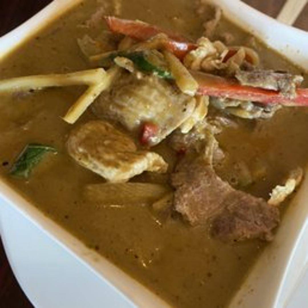 A beloved Thai classic, our Green Curry is crafted with a fragrant green chili paste, creamy coconut milk, bamboo shoots, crisp bell peppers, tender eggplant, and fresh Thai basil. A wonderfully spicy and aromatic dish, served with jasmine rice.