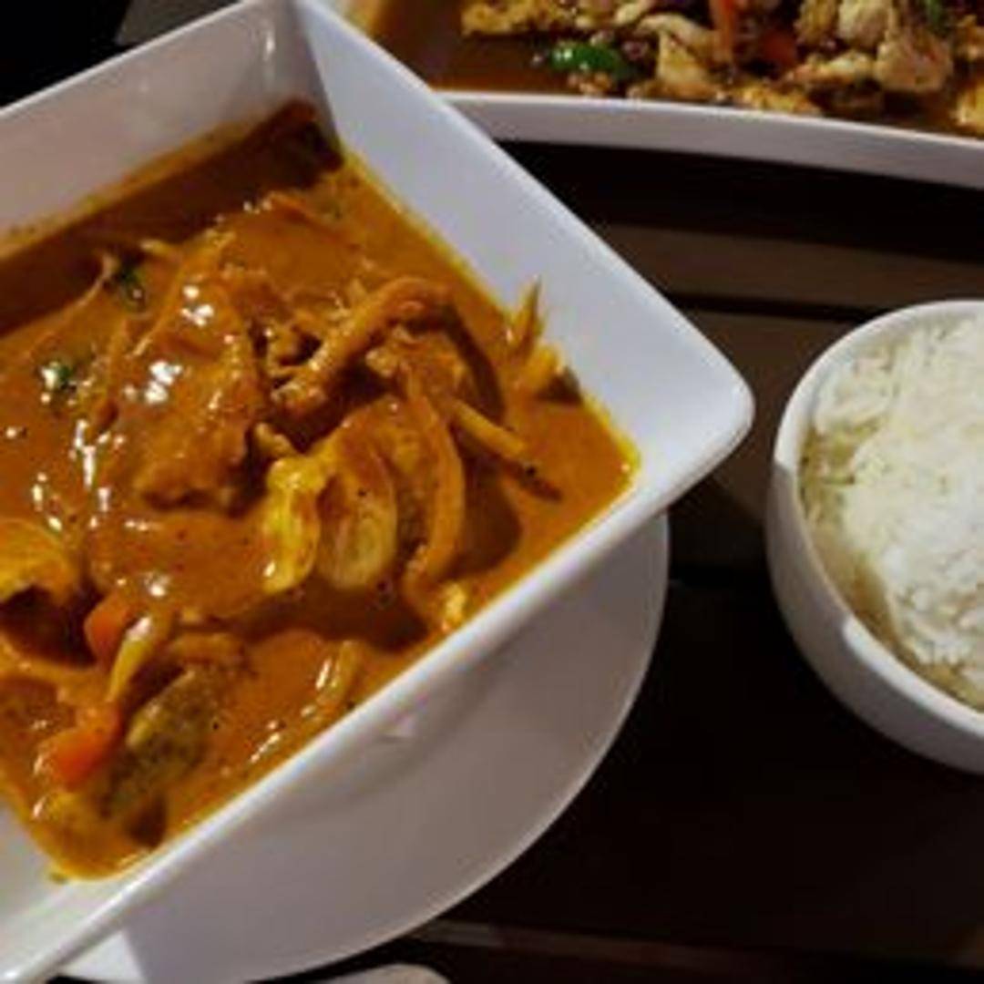 A vibrant and aromatic Thai curry, rich with the flavors of red chili paste and creamy coconut milk. Simmered to perfection with bamboo shoots, bell peppers, and fresh Thai basil. Customize with your choice of protein for a balanced and comforting dish, served with jasmine rice.