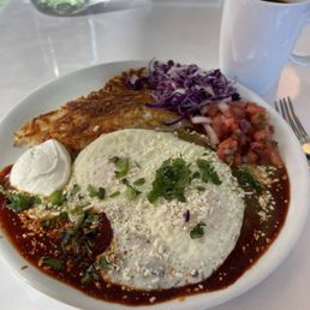Two fried eggs served atop crispy corn tortillas, smothered in our signature red or green chile sauce, and garnished with refried beans, queso fresco, and crema. Spice level can be adjusted to your preference.