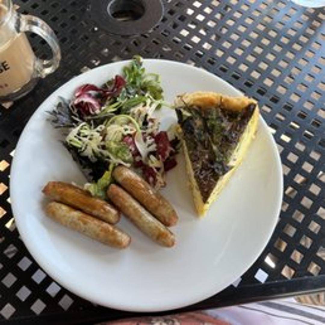 A savory baked egg custard in a flaky pastry crust. Filled with a rotating selection of fresh seasonal vegetables and cheeses. Ask about today's delicious quiche offering.