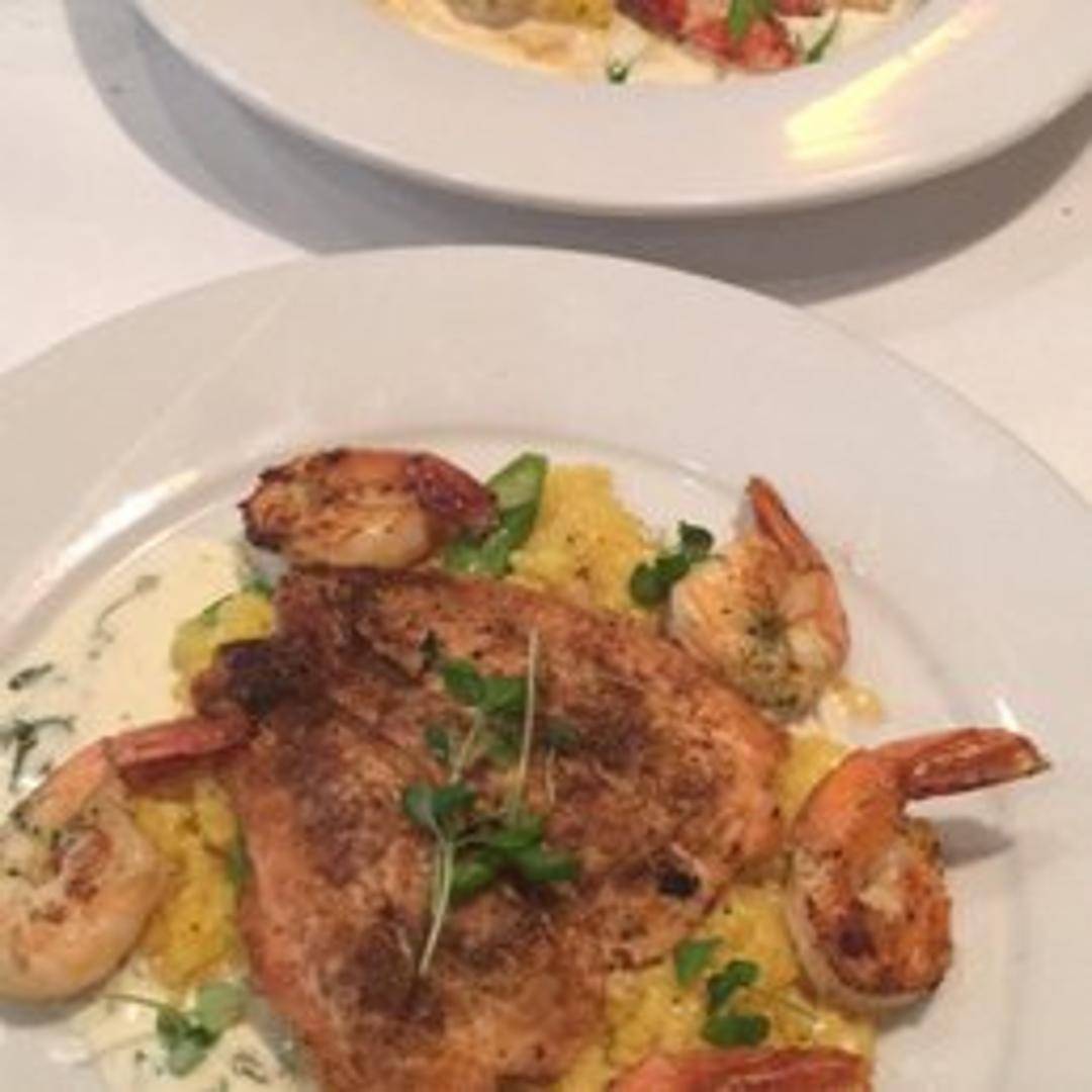 Pan-fried salmon and shrimp coated in seasoned breadcrumbs, served with a lemon-butter sauce.