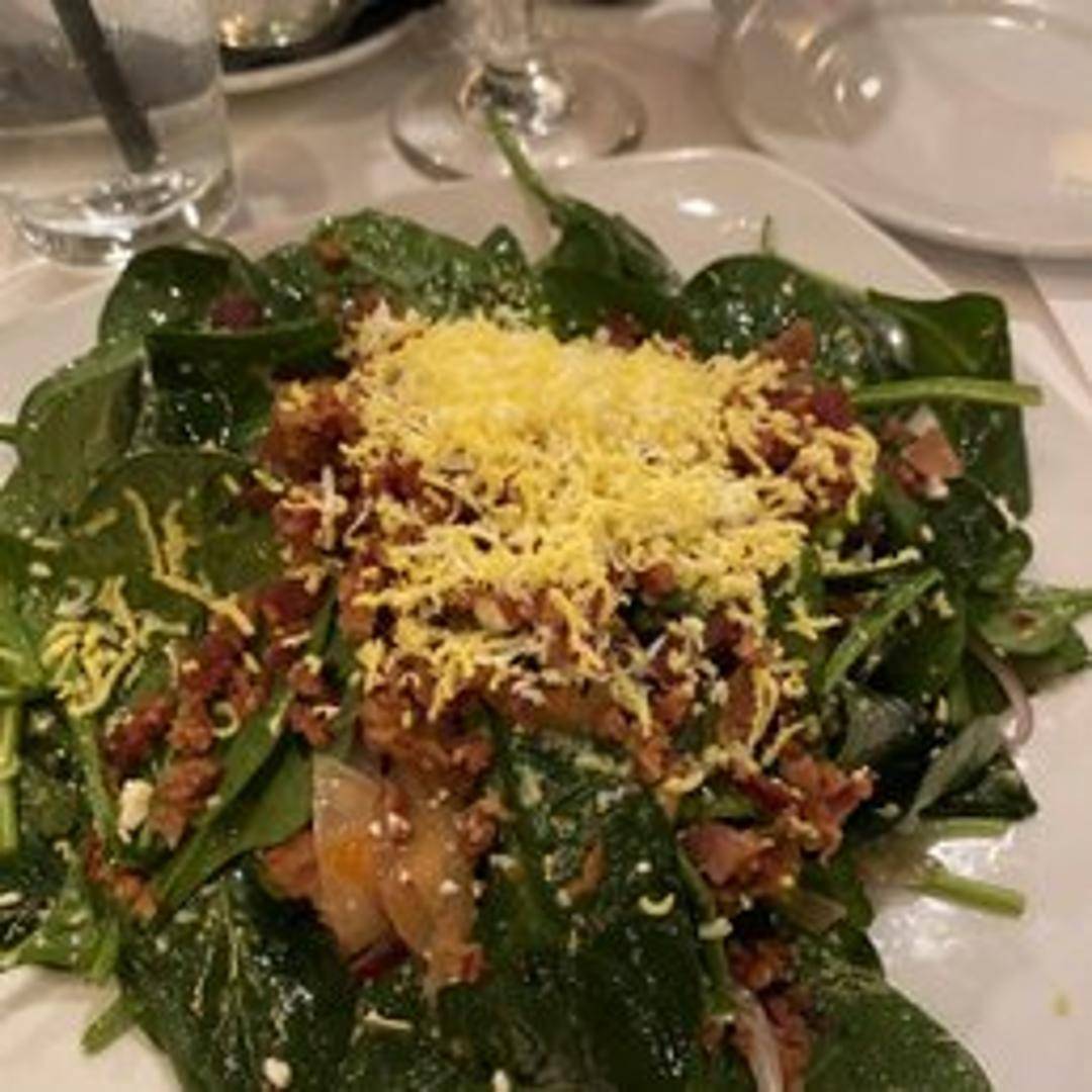 Fresh spinach tossed with [insert specific ingredients like: crumbled bacon, hard-boiled egg, mushrooms, red onion, and a balsamic vinaigrette].