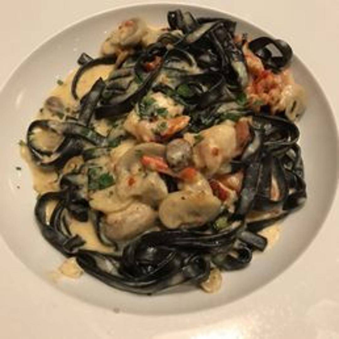 Fettuccini pasta infused with squid ink, creating a striking dark color. Served with your choice of sauce and protein.