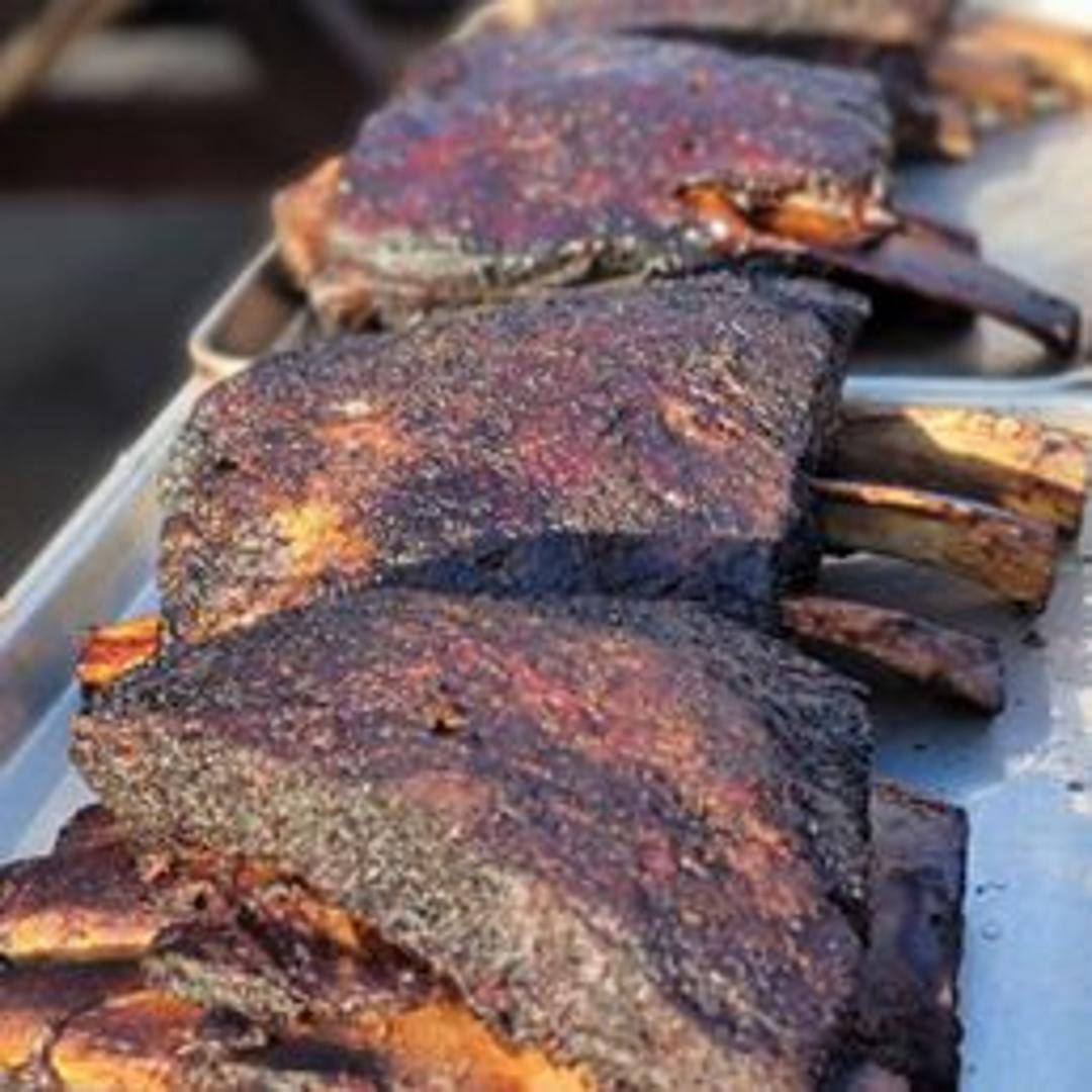 Massive, meaty beef ribs, also known as plate ribs, offering a substantial portion of tender, flavorful beef. These ribs are cut thick and provide a rich, satisfying experience. Often slow-cooked or smoked for optimal tenderness and flavor.
