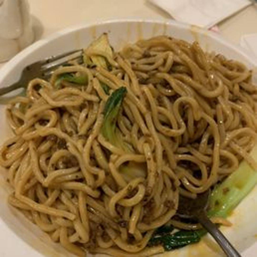 A classic Sichuan street food dish featuring thin wheat noodles tossed in a spicy and savory sauce made with preserved vegetables, chili oil, Sichuan peppercorns, and ground pork. Garnished with chopped peanuts and scallions for added texture and flavor. A flavorful and slightly numbing experience.