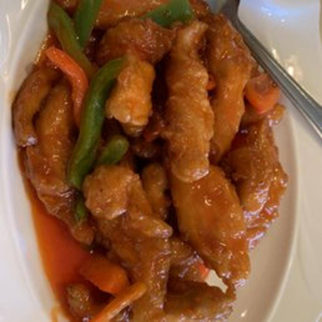 Tender pieces of battered and fried chicken coated in a sweet, tangy, and slightly spicy orange-flavored sauce. Often served with steamed rice.