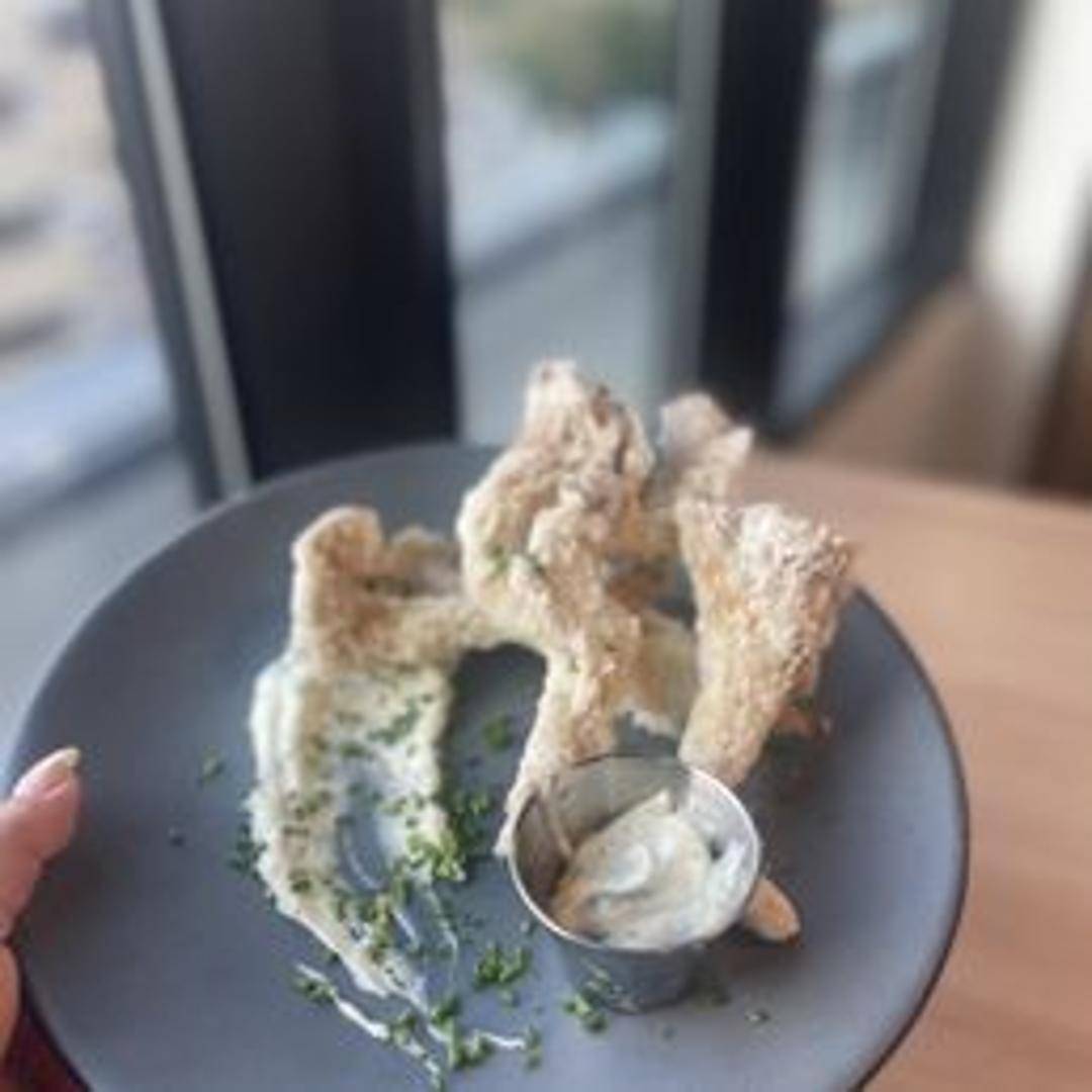 Oyster mushrooms lightly battered and fried to a golden crisp. Served with a dipping sauce. A savory vegetarian appetizer.