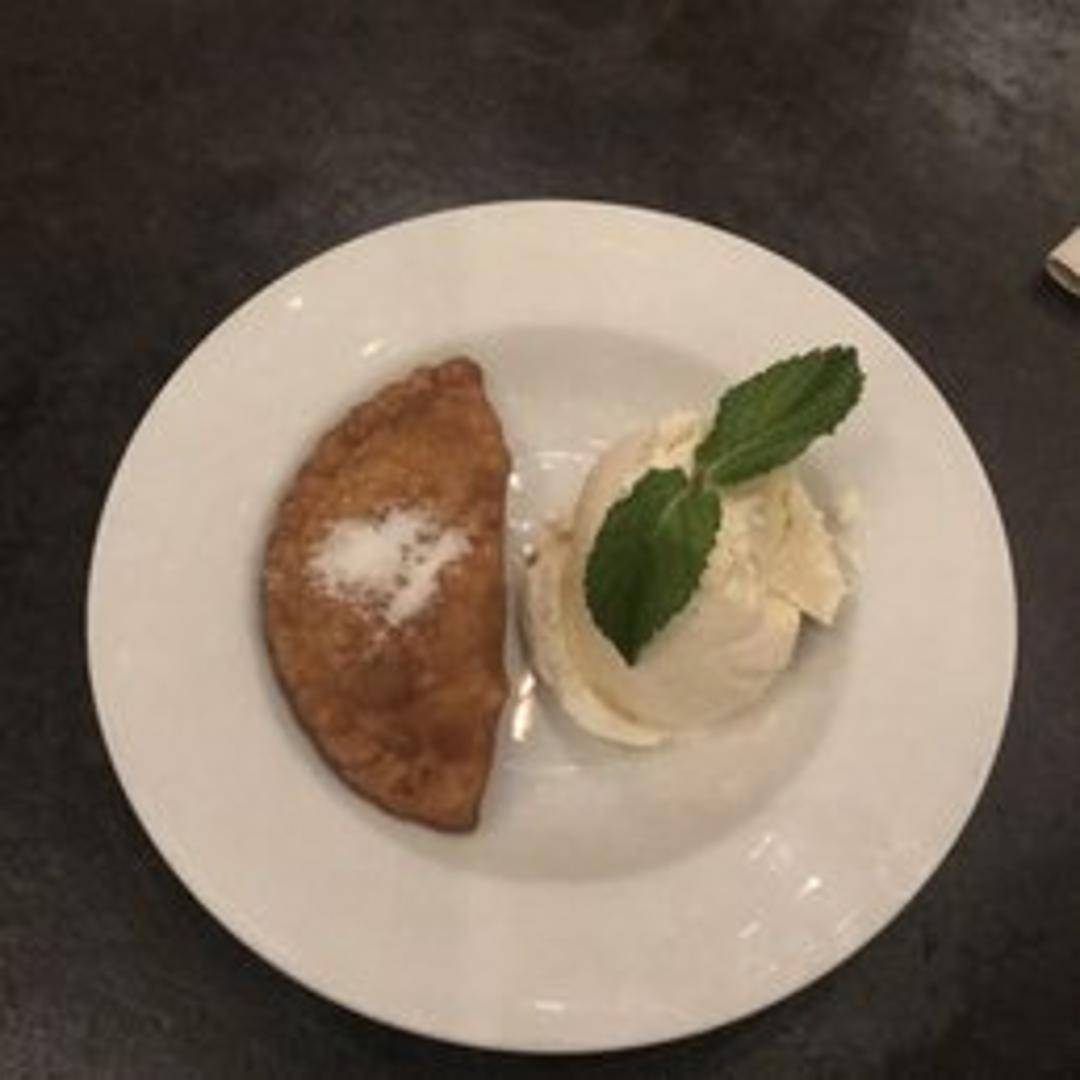 A sweet empanada filled with a rich, bourbon-infused pecan pie filling. The flaky crust encases the classic combination of pecans, brown sugar, butter, and a generous splash of bourbon for a warm and comforting dessert.