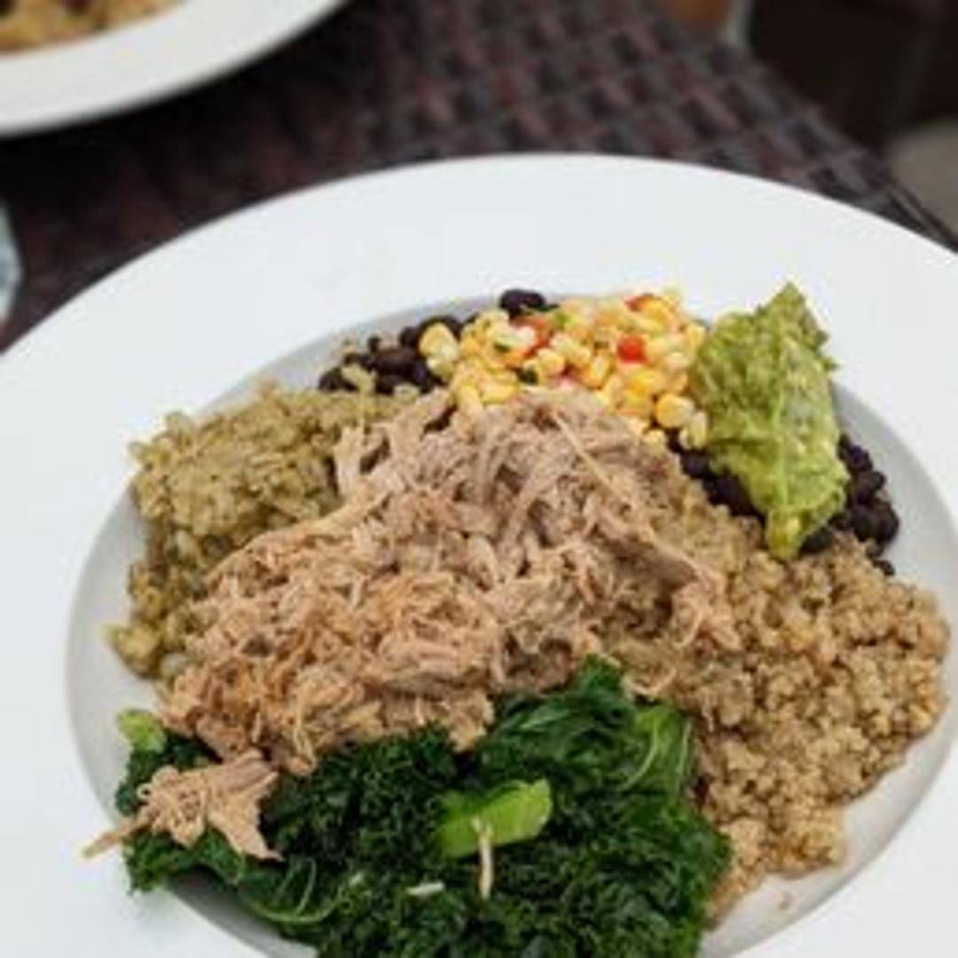 Quinoa, roasted vegetables, avocado, black beans, and a choice of protein. Topped with a house-made dressing.
