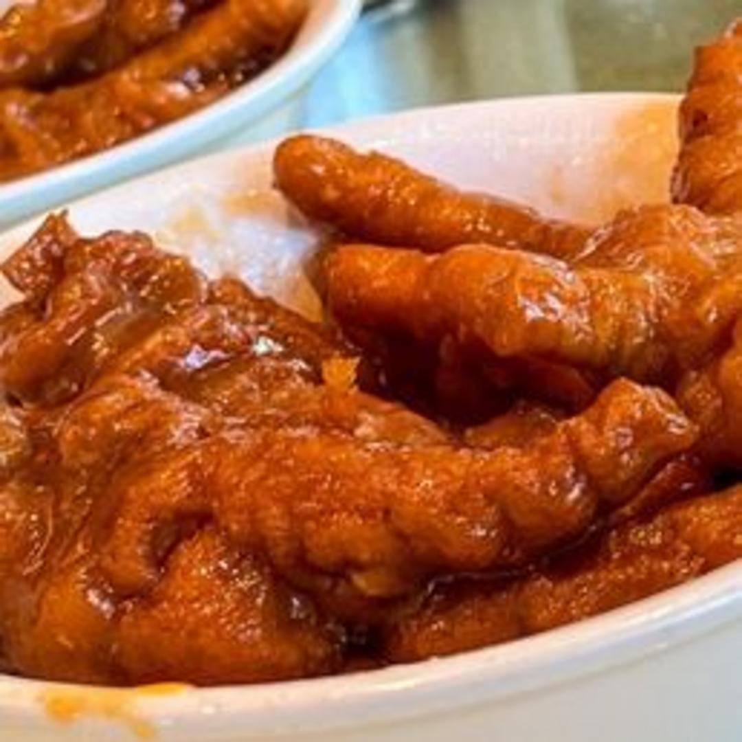 Chicken feet steamed with black bean sauce and chili.