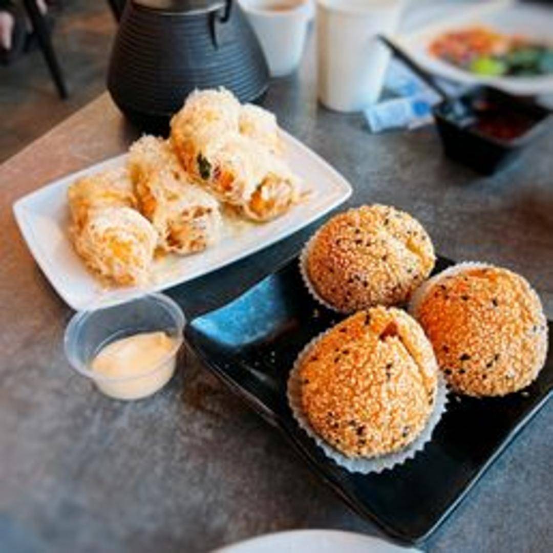 Deep-fried spring rolls filled with shrimp and vegetables.