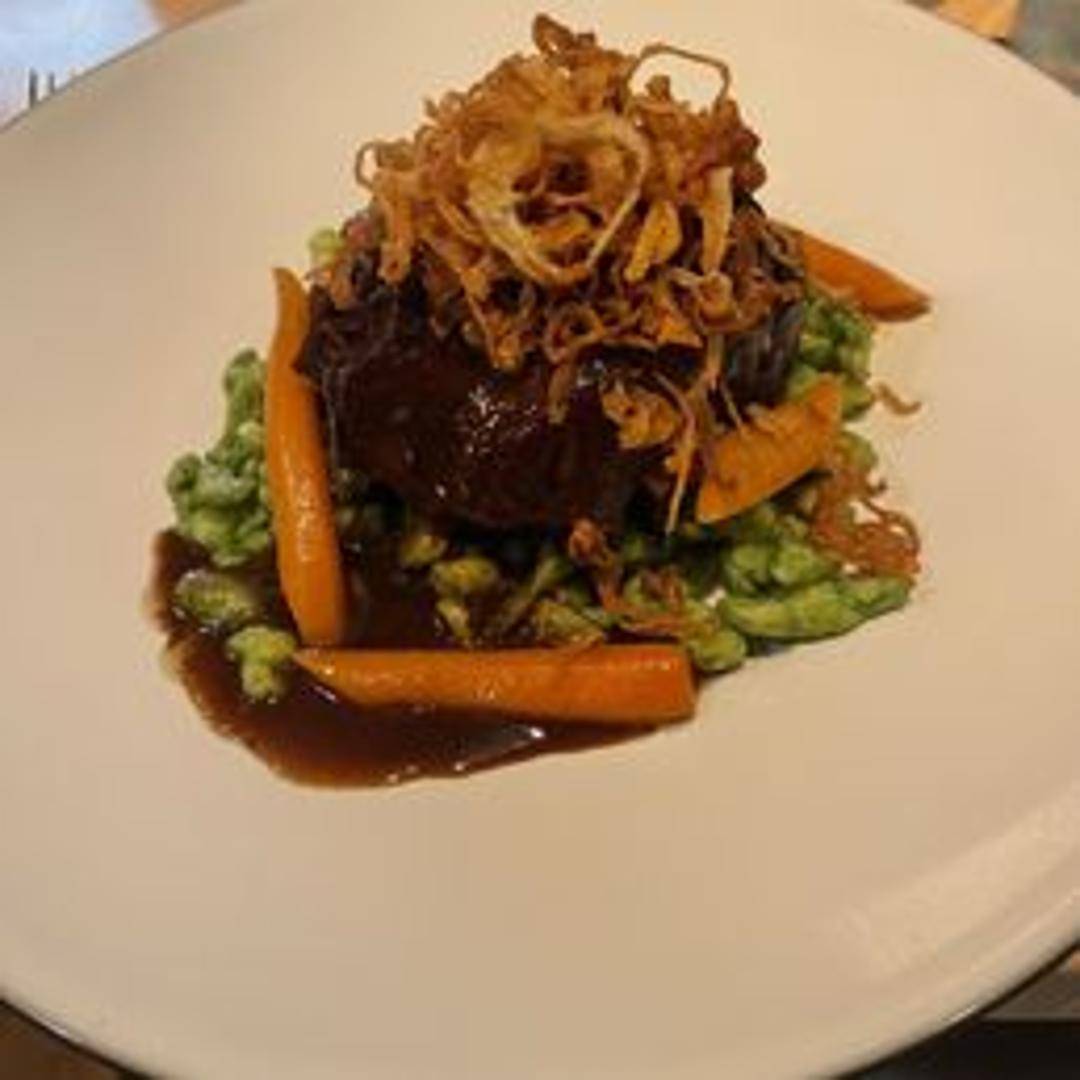 Soft and chewy German egg noodles, pan-fried until golden brown. Typically served as a side dish, seasoned with butter and parsley.