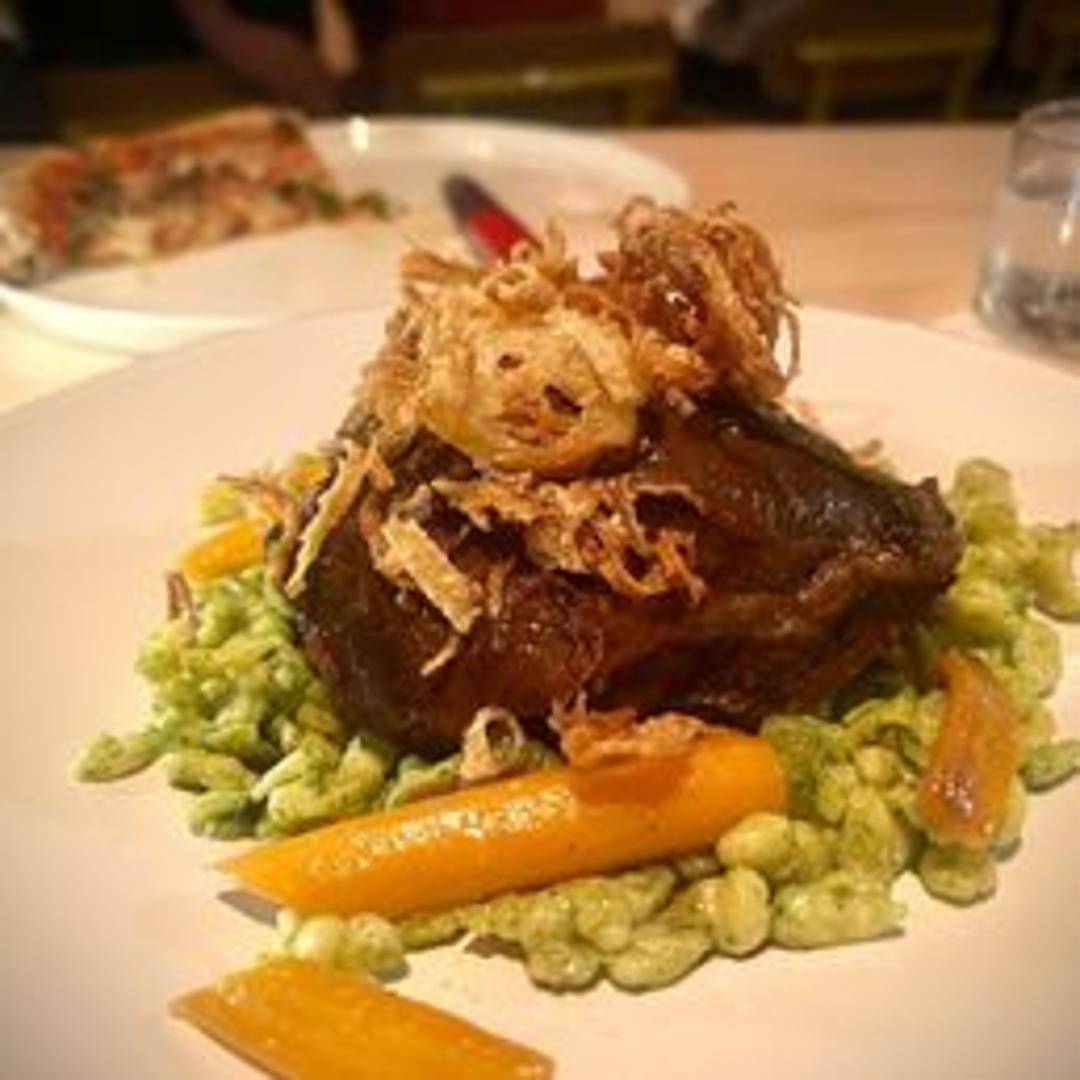 Tender and succulent beef cheeks slow-braised in a traditional Sauerbraten marinade. The marinade is a blend of vinegar, red wine, spices, and aromatics, resulting in a complex and deeply flavorful dish. Served with a rich, reduced sauce and traditional Sauerbraten accompaniments.