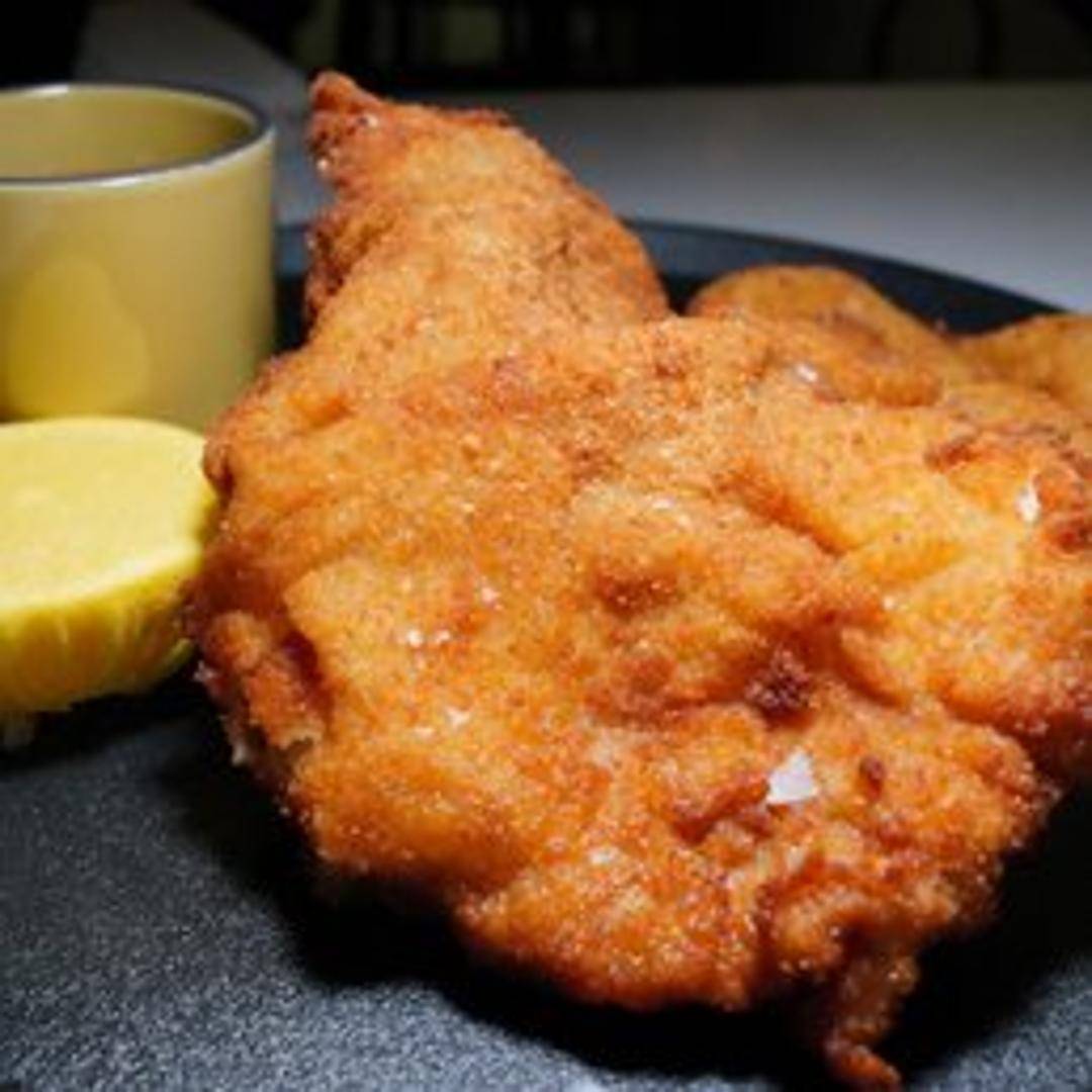 A classic Austrian dish: thinly pounded and breaded veal cutlet, pan-fried to a golden brown and served with a lemon wedge.