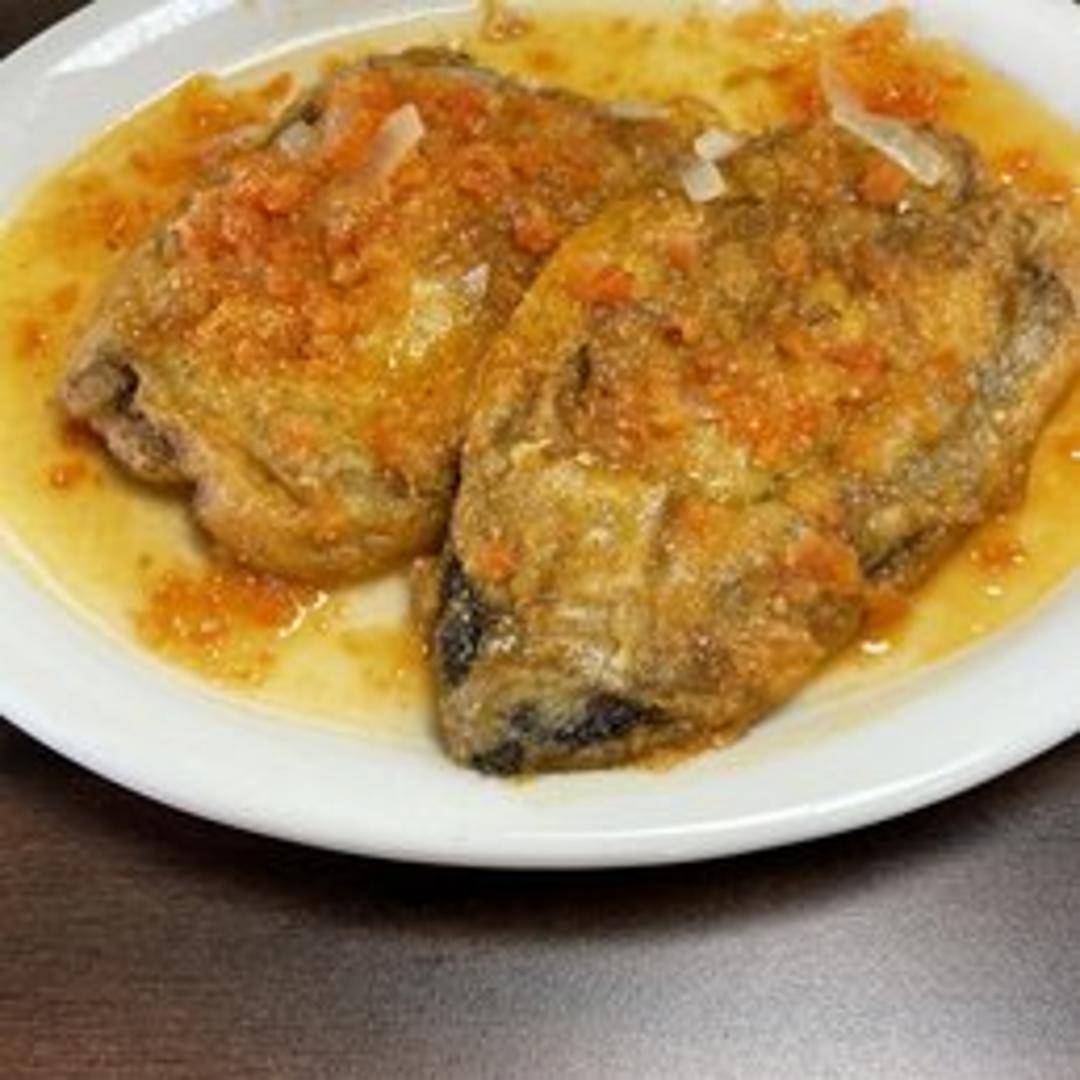 Poblano peppers stuffed with cheese, battered and fried until golden brown, then smothered in a mild tomato sauce. Served with rice and beans.