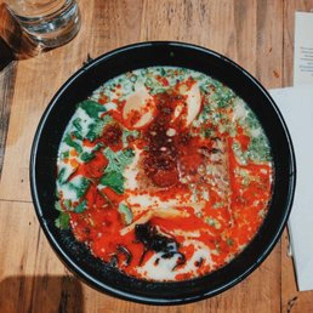 A fiery and flavorful ramen dish featuring a rich, spicy broth, wheat noodles, and a variety of toppings. Expect a satisfying kick of heat balanced with savory umami notes. Common ingredients include marinated pork (chashu), seasoned soft boiled egg, nori seaweed, scallions, and bean sprouts, but may vary.