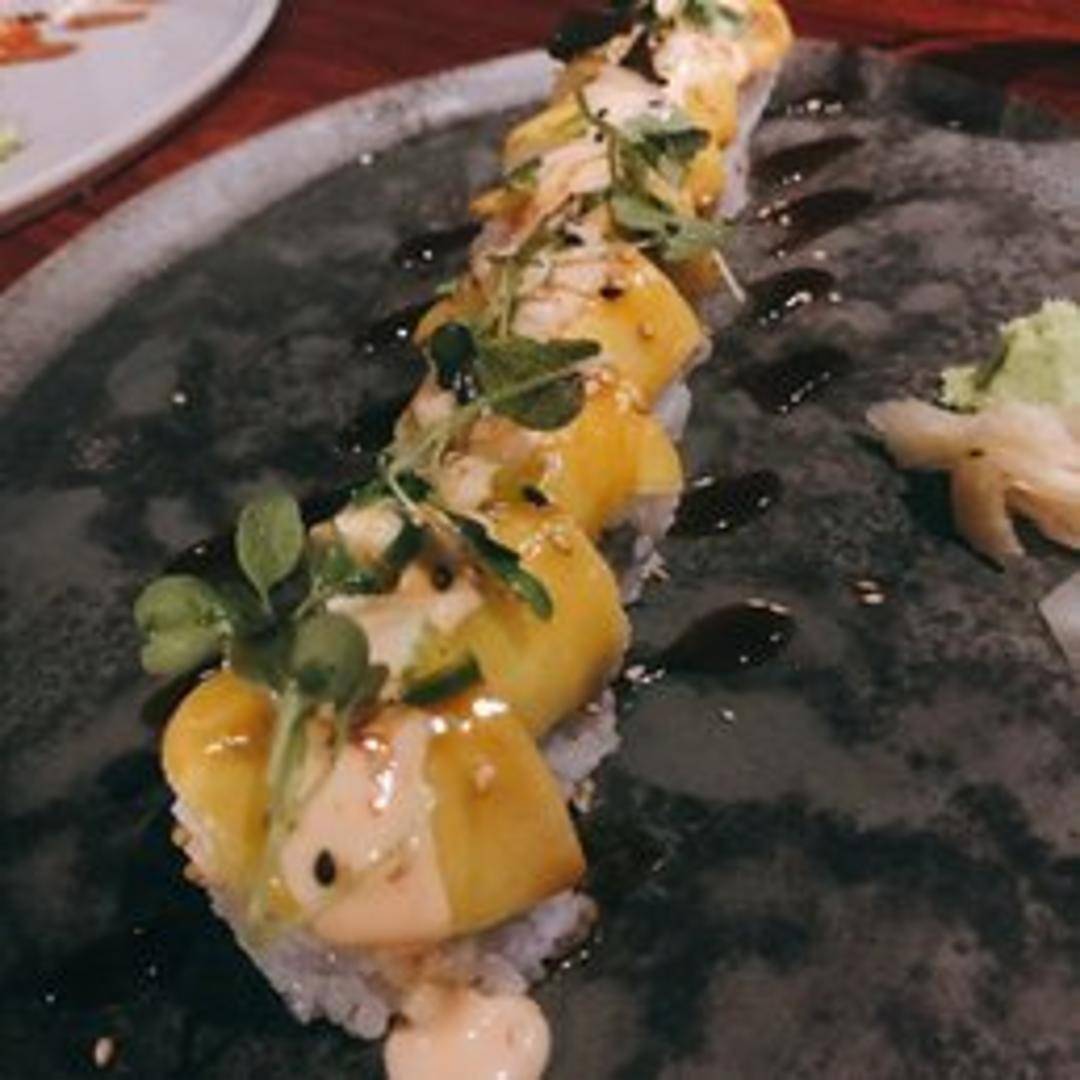 A vibrant and innovative sushi roll that harmoniously blends sweet and savory notes. This roll typically features fresh, ripe mango slices, often combined with tender seafood like shrimp tempura or crab, and other complementary ingredients, offering a delightful interplay of textures and exotic flavors.
