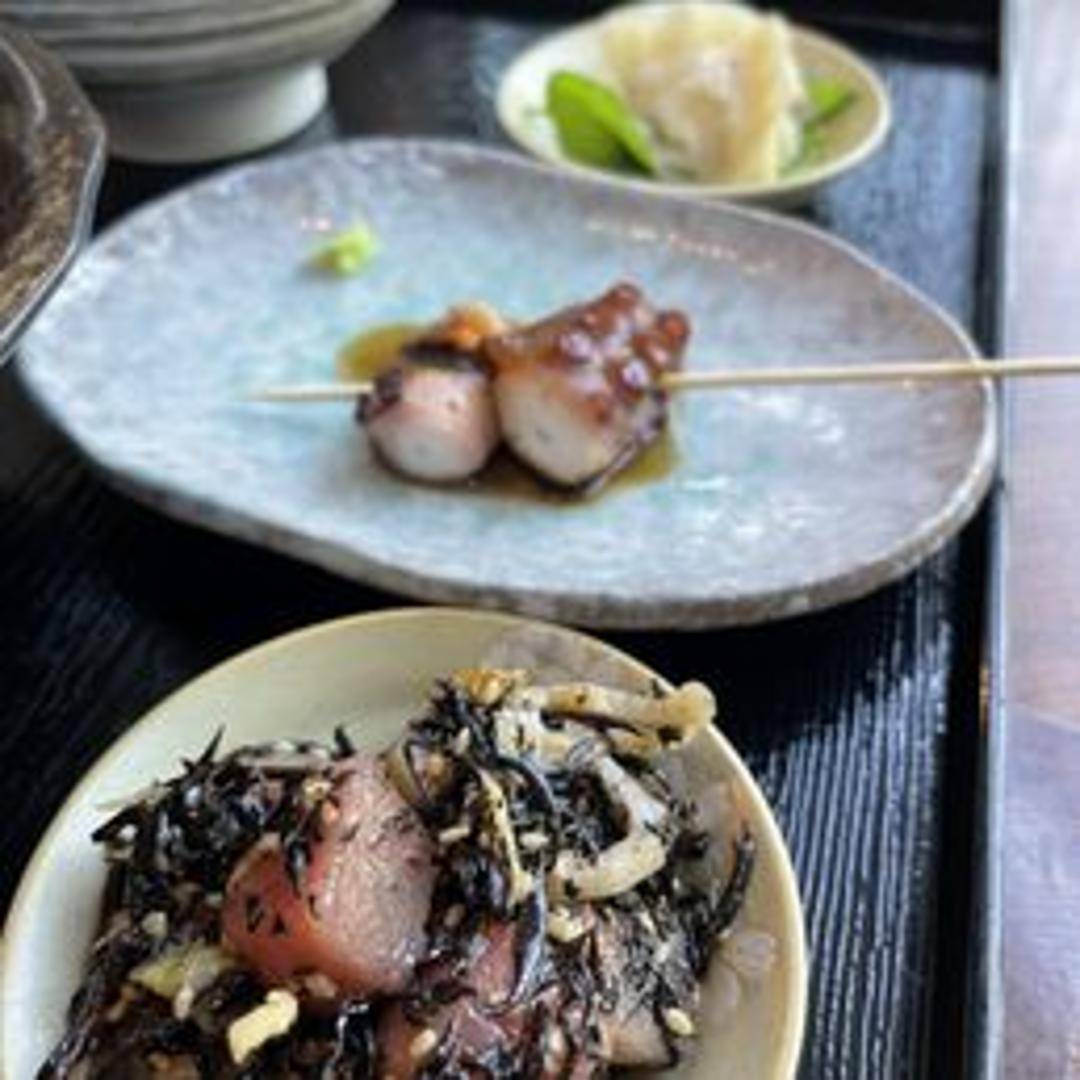 A refreshing and vibrant side dish featuring tender green wakame seaweed, lightly seasoned with a delicate blend of toasted sesame oil, a hint of sweet rice vinegar, and a sprinkle of sesame seeds. A perfect palate cleanser.