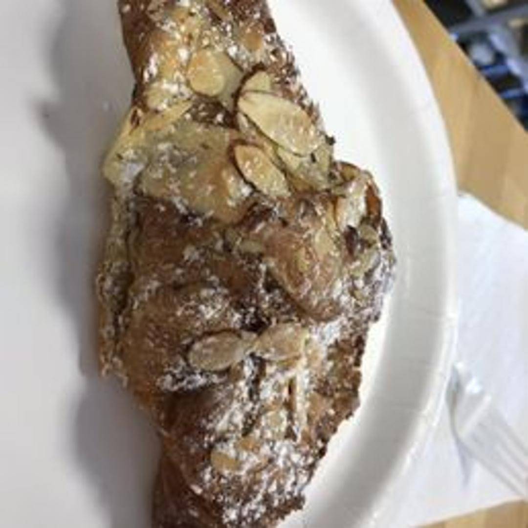 A buttery and flaky croissant filled with a rich almond cream and topped with sliced almonds and powdered sugar. Often baked a second time to achieve a caramelized, nutty exterior. A decadent and satisfying pastry, perfect for breakfast or a sweet treat.
