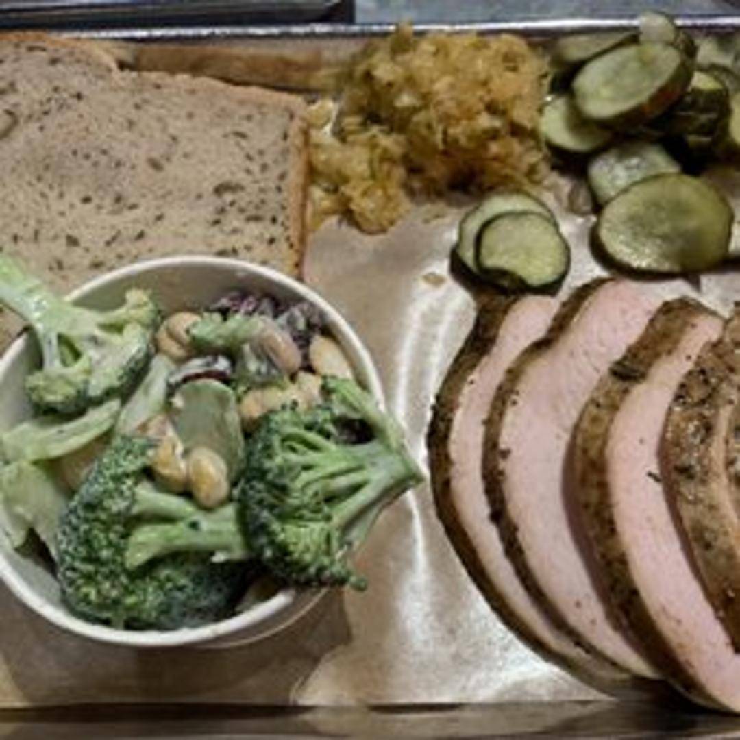 Our succulent turkey breast is slow-smoked to perfection, offering a tender and juicy alternative to traditional BBQ meats. Seasoned with Mabel's signature dry rub, each thick-cut slice boasts a delicate smoky flavor and a lean, savory profile that's both satisfying and incredibly flavorful, making it a perfect choice for any barbecue enthusiast.
