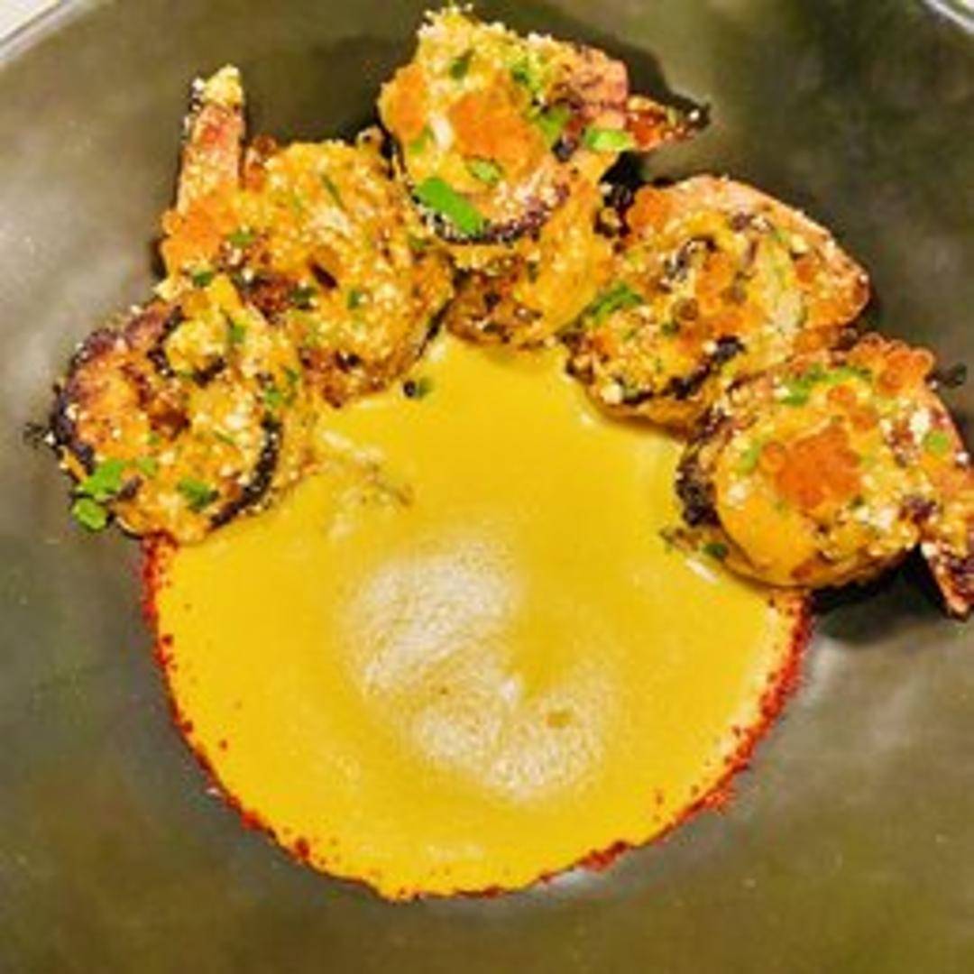 Grilled jumbo prawns, marinated in garlic and herbs, served with a creamy lemon aioli for dipping. A succulent and satisfying seafood starter.