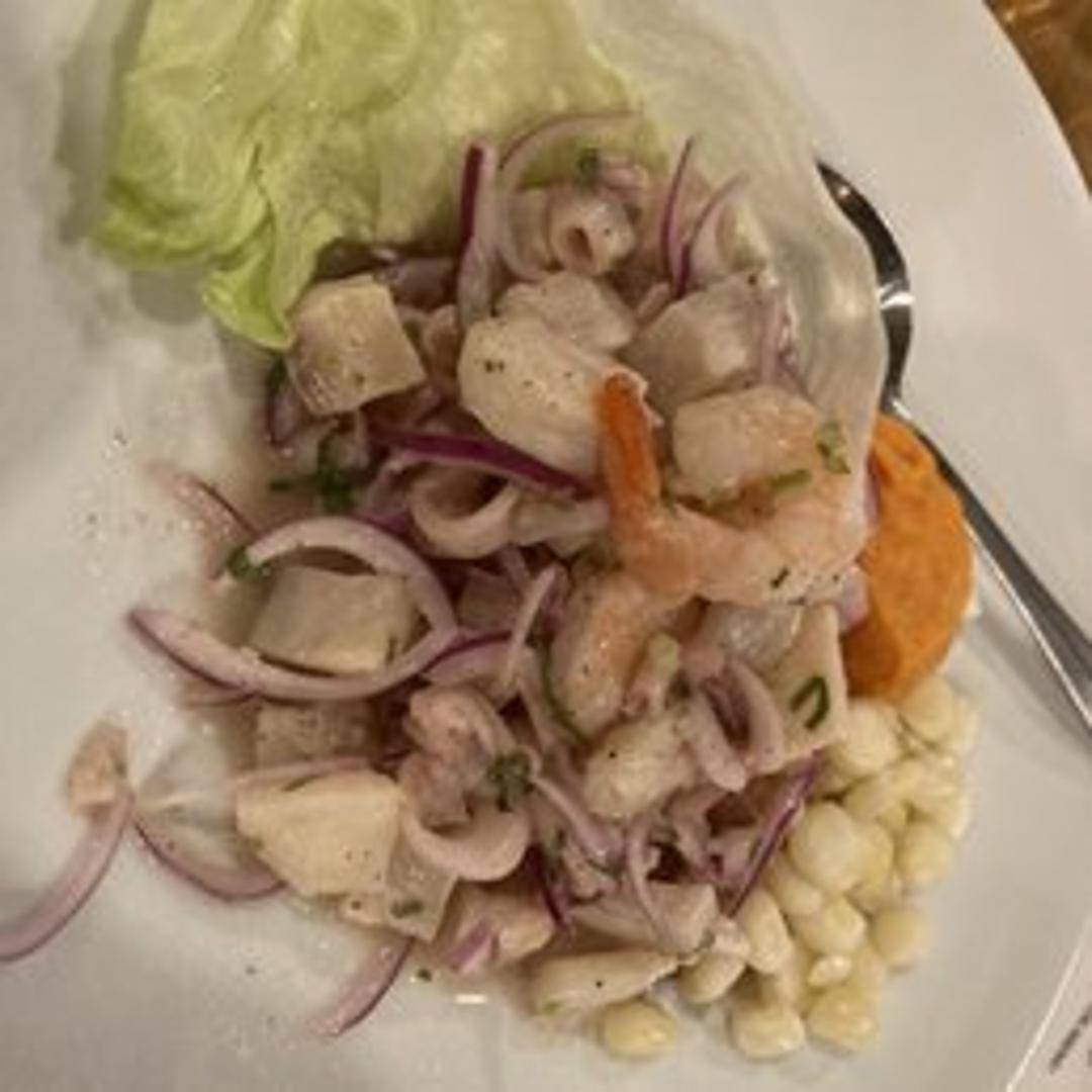 A vibrant mix of seafood, including fish, shrimp, squid, and mussels, marinated in lime juice, onions, cilantro, and aji amarillo peppers. A refreshing and flavorful ceviche option with a variety of textures and tastes.