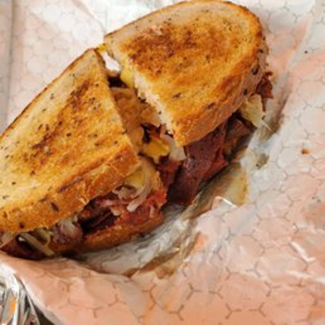 Savory plant-based corned beef, sauerkraut, Swiss cheese, and Russian dressing on grilled rye bread. A tangy and satisfying vegan twist on a deli staple.