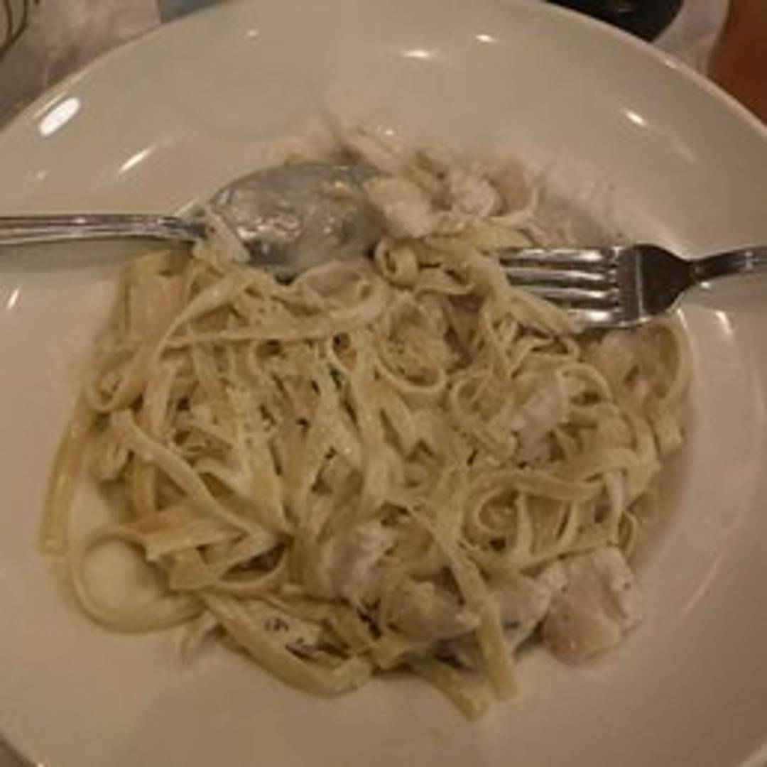 Fettuccine pasta tossed in a creamy Alfredo sauce with grilled chicken breast. Garnished with Parmesan cheese and fresh parsley.