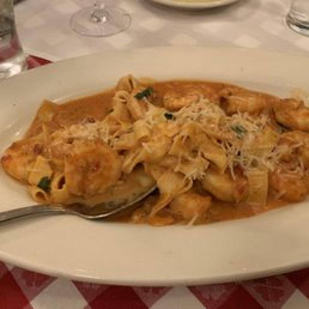 Shrimp sautéed with spicy marinara sauce, crushed red pepper flakes, and served over linguine pasta.
