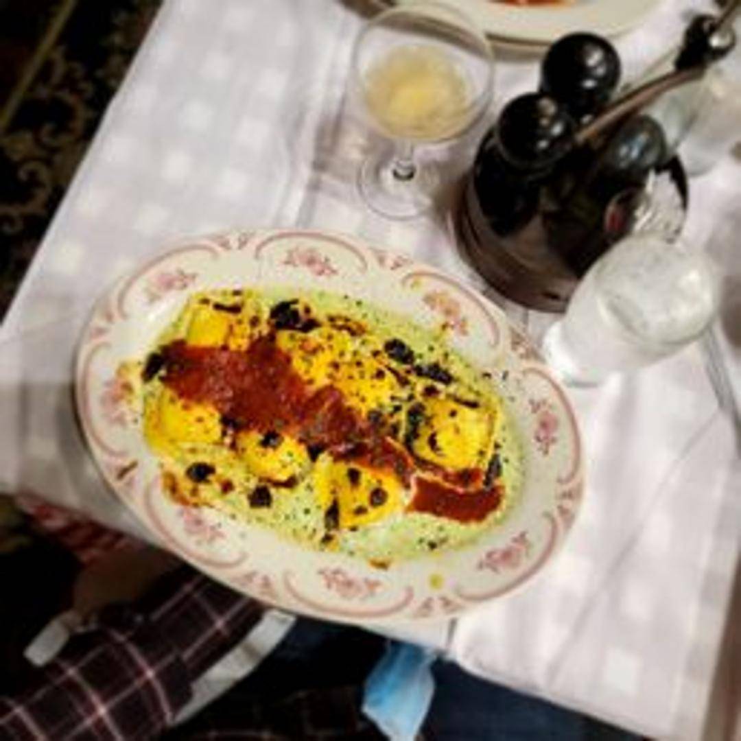 Classic square ravioli pasta pockets generously filled with a creamy blend of ricotta, mozzarella, and Parmesan cheeses, served with your choice of Maggiano's signature marinara or a rich meat sauce.