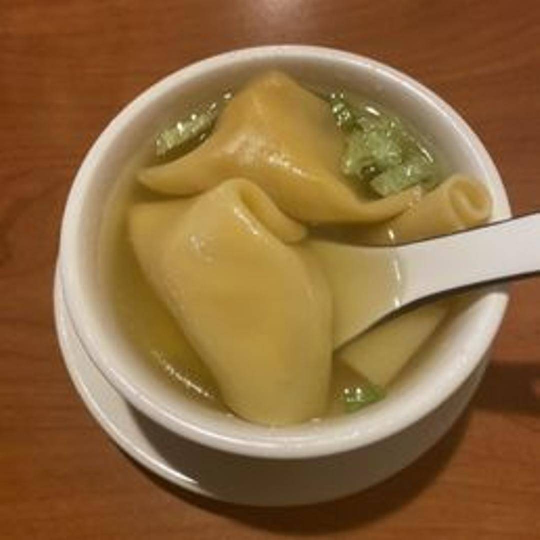 Clear broth filled with delicate, pork-filled wontons. Garnished with sliced scallions.