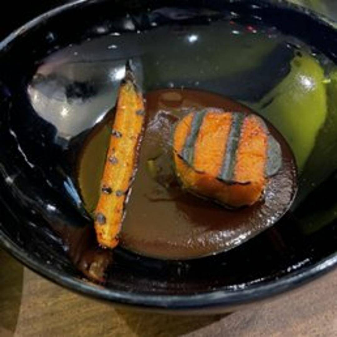 Experience the vibrant and complex flavors of Manchamanteles, a traditional Mexican mole known as the 'tablecloth stainer' due to its rich, colorful sauce. This exquisite dish features tender meats, often pork or chicken, simmered to perfection in a deeply aromatic sauce crafted from a blend of dried chilies, fruits like pineapple and plantain, nuts, and a medley of spices. The result is a harmonious balance of sweet, savory, and subtly spicy notes, creating a truly unique and memorable culinary journey.