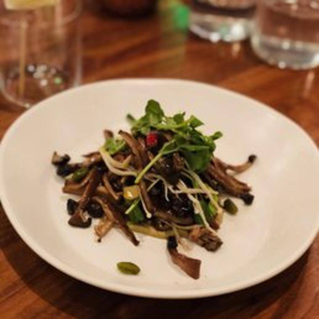 An assortment of mushrooms marinated in a flavorful blend of oil, vinegar, herbs, and spices. Expect a savory and tangy flavor profile, with a tender and slightly chewy texture. Likely served as a side dish or appetizer.