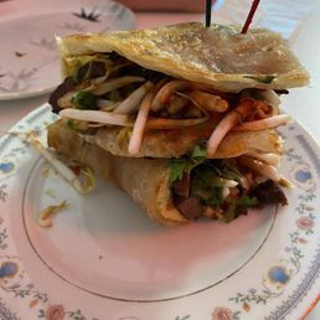 Savory crepe filled with egg, vegetables, and a variety of sauces. A popular street food staple.
