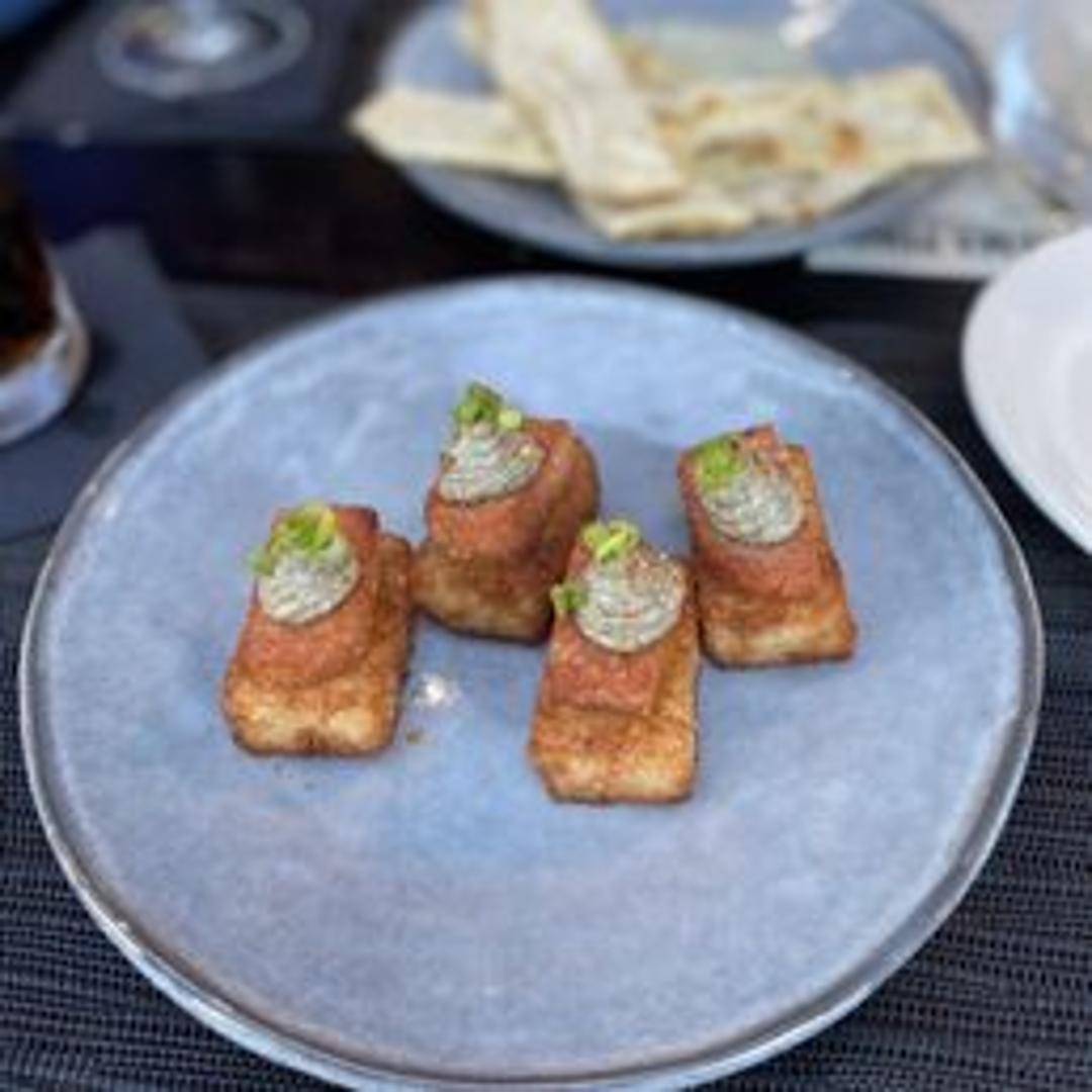 Discover a unique and unexpected culinary delight with our Spam Crispy Rice. This innovative dish features perfectly pan-fried crispy rice blocks, providing a satisfying crunch, topped with savory, caramelized slices of premium Spam. Drizzled with a special house sauce and garnished with a hint of nori and sesame, it's a harmonious blend of textures and umami-rich flavors, offering a playful twist on a classic.