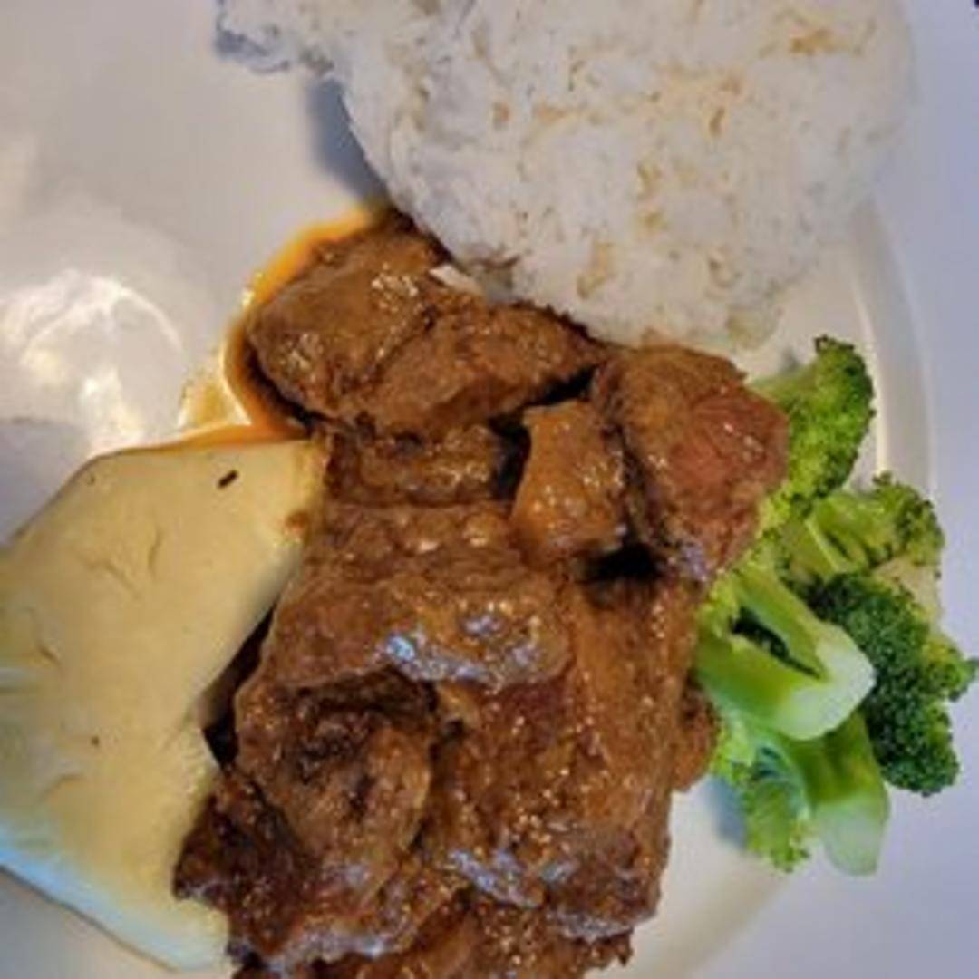 Savor the legendary Beef Rendang, a dry curry renowned for its profound depth of flavor and tender texture. Our rendition features premium cuts of beef, slow-cooked for hours in a luxurious blend of creamy coconut milk and an aromatic paste of fresh herbs and spices, including lemongrass, galangal, turmeric, and chilis. The long simmer allows the liquid to reduce, leaving the beef incredibly tender and infused with a rich, complex, and slightly caramelized essence that is truly unforgettable.