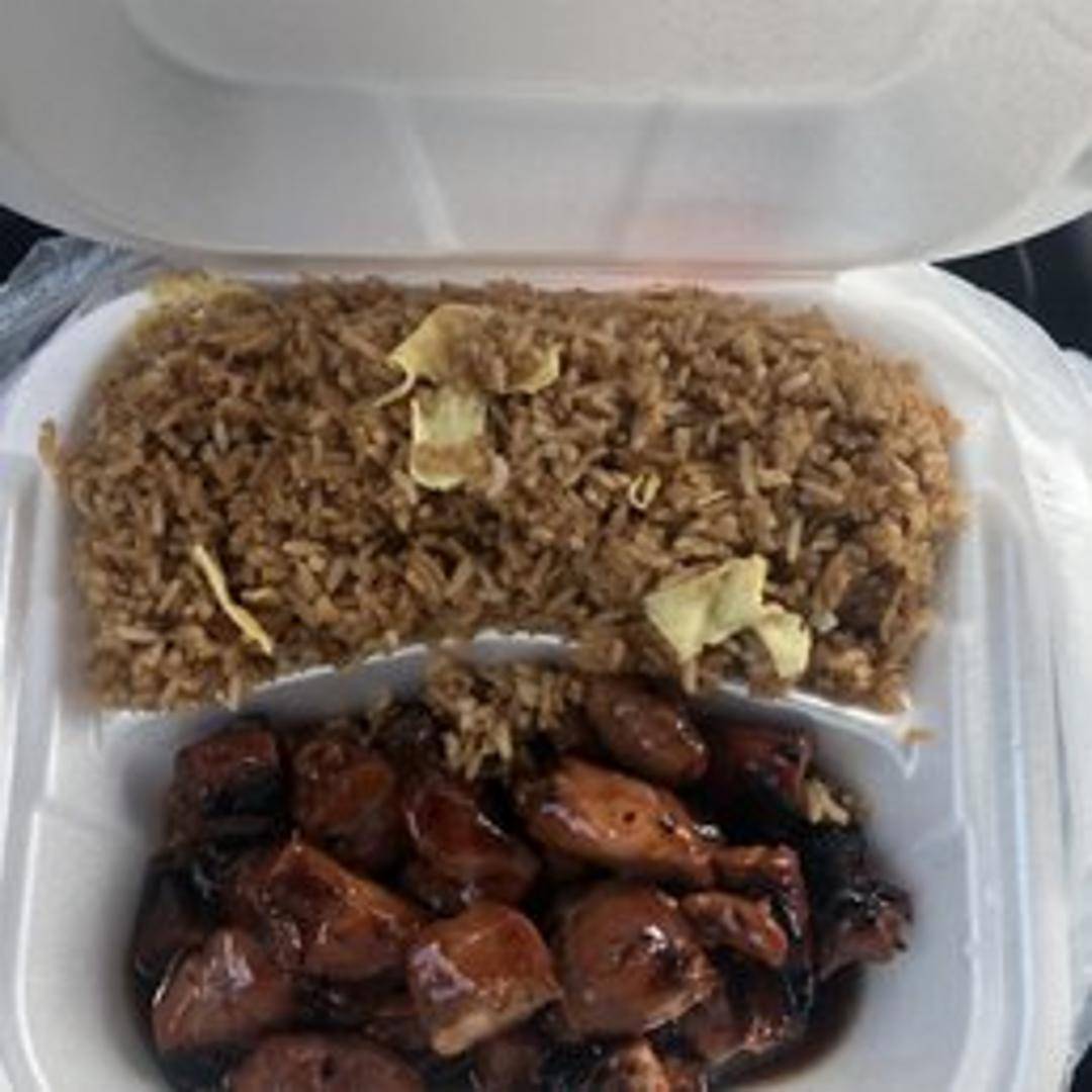 Tender pieces of chicken marinated in a sweet and savory bourbon-infused sauce. Served glazed and juicy, offering a distinctively rich and slightly tangy flavor profile. Typically served over rice.