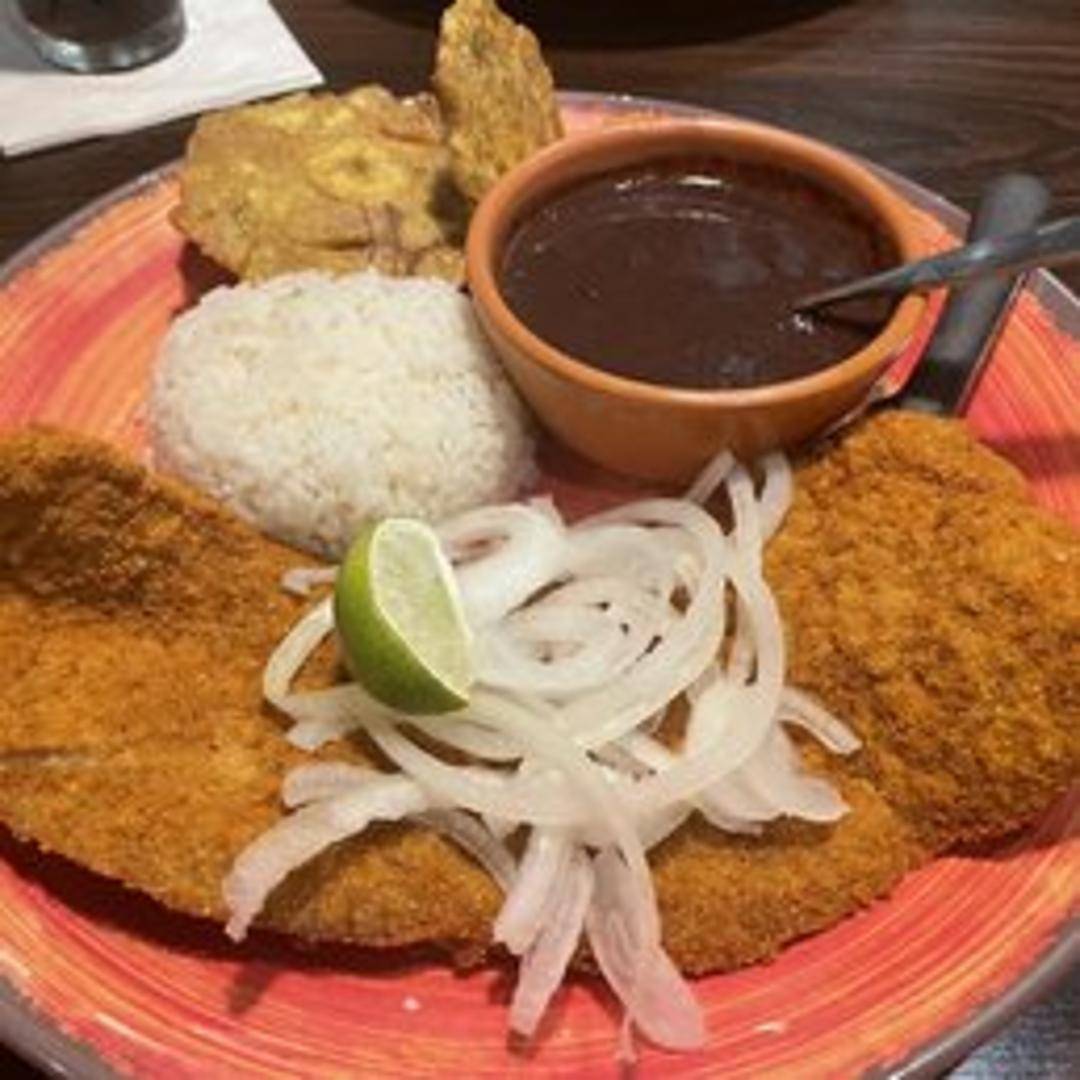 Thinly sliced steak, breaded and fried to a golden crisp. A Cuban classic, served with your choice of rice and plantains.