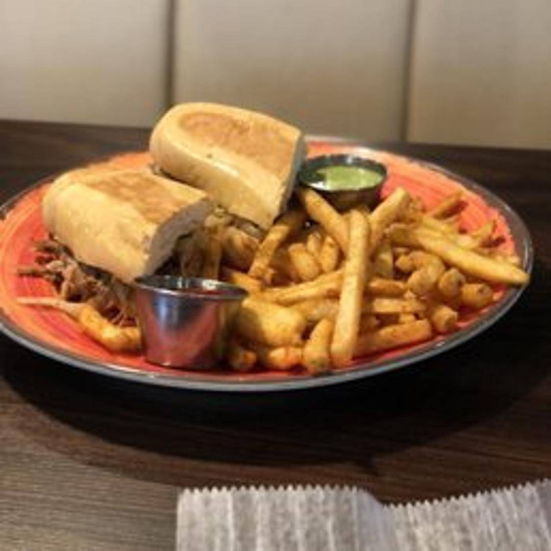 Slow-roasted, succulent pork served on toasted Cuban bread with mojo sauce, onions, and sometimes pickles.