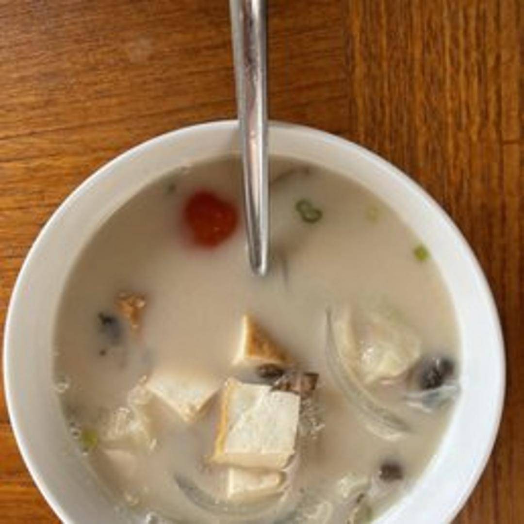 A creamy and aromatic coconut milk soup infused with galangal, lemongrass, kaffir lime leaves, mushrooms, tomatoes, and your choice of protein (chicken, tofu, or shrimp). A delicate balance of sweet, sour, and savory flavors with a gentle warmth from the herbs. Garnished with cilantro and a touch of chili oil for added depth. Served with a side of steamed jasmine rice (optional).