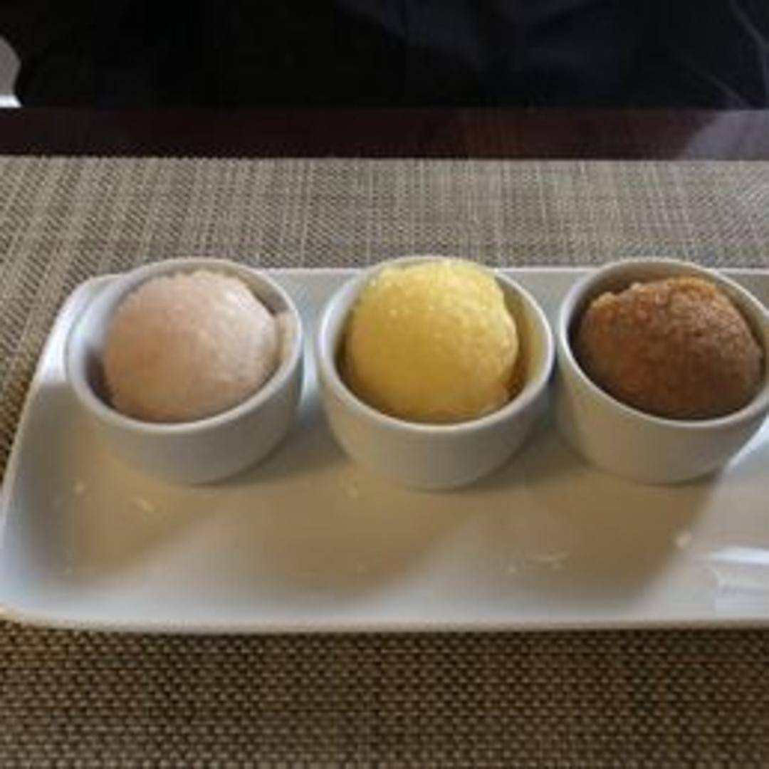 A refreshing selection of three house-made sorbets. Flavors change seasonally based on the freshest available fruits. Ask your server for today's selection. Dairy-free and vegan.
