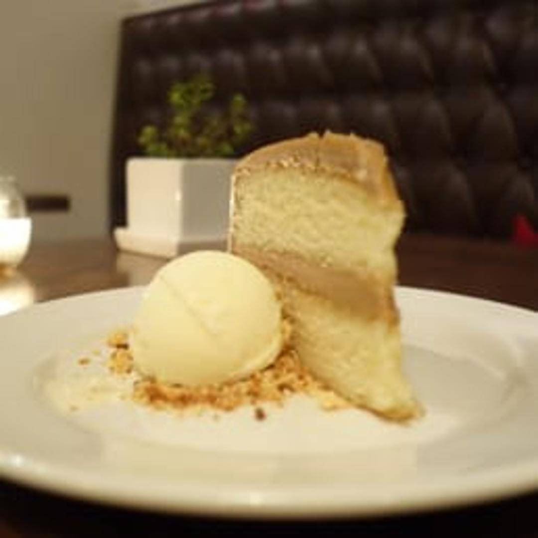 A moist and decadent cake featuring layers of fluffy vanilla sponge soaked in a rich, homemade caramel sauce. Each slice offers a balance of sweet caramel notes and a tender, melt-in-your-mouth texture. Served with a dusting of powdered sugar.
