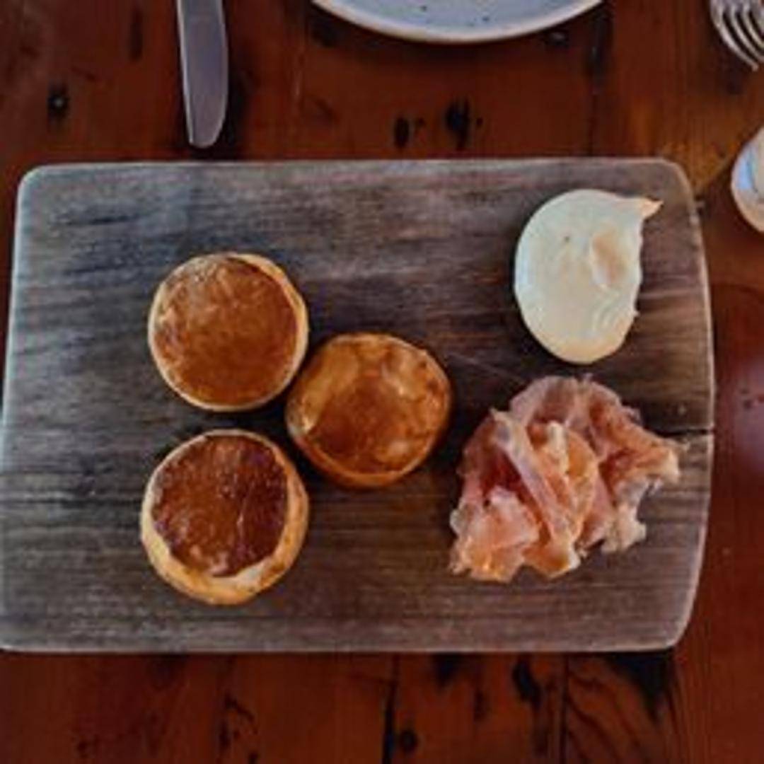 Cured and aged country ham, thinly sliced and often served with biscuits, red-eye gravy, or fruit preserves.
