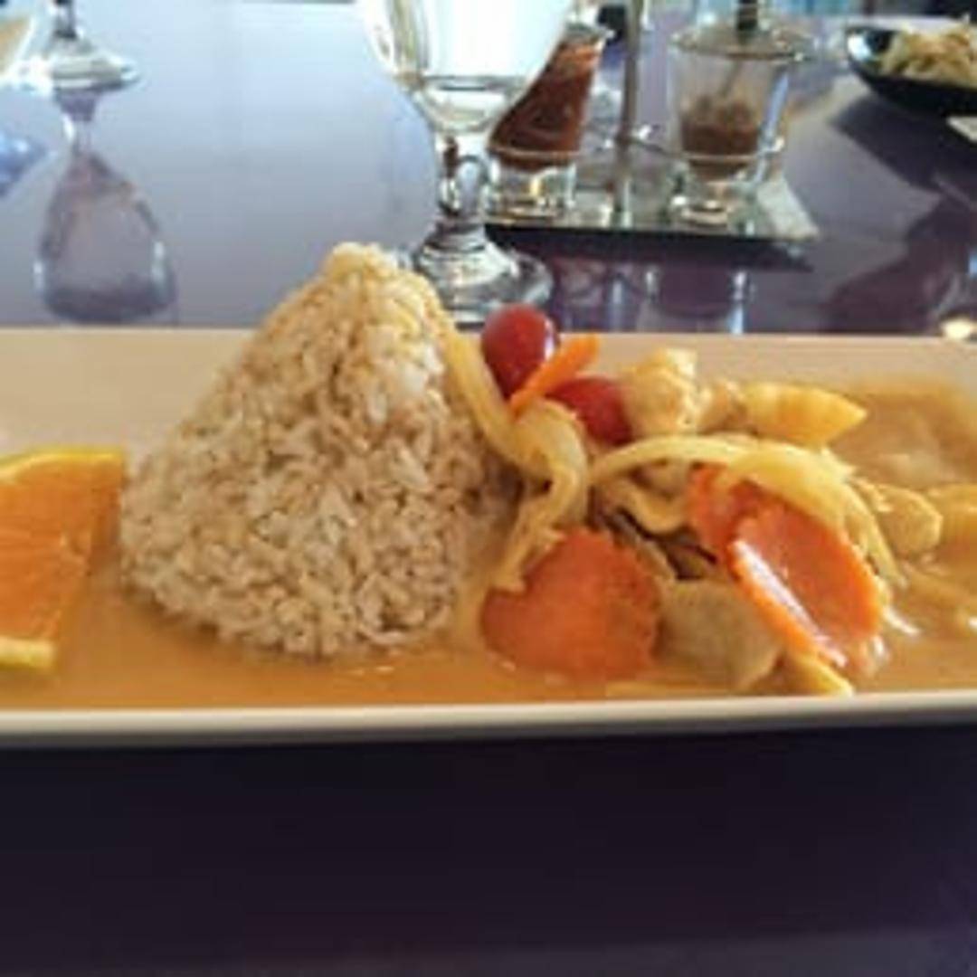 A mild and creamy Thai curry featuring a rich, golden-hued coconut milk base infused with aromatic turmeric, cumin, and other delicate spices. This comforting dish is typically prepared with your choice of protein and various vegetables, such as potatoes, carrots, and onions, offering a subtly sweet and savory flavor profile that's less spicy than its red and green counterparts.