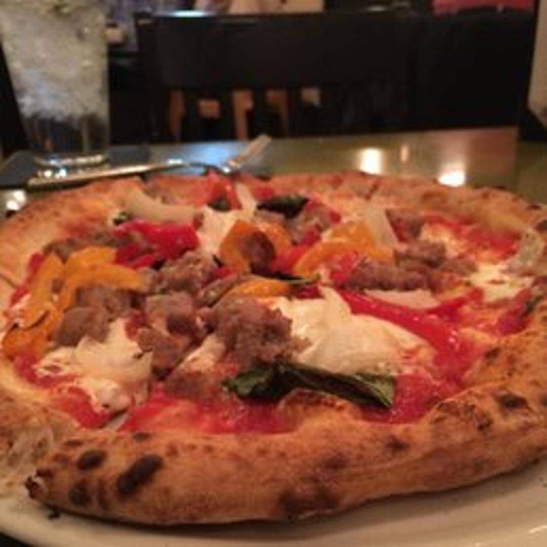 A large, hand-tossed, thin-crust pizza baked in our coal-fired oven. Features a slightly sweet tomato sauce, aged mozzarella, and a dusting of parmesan. Cut into wide, foldable slices.