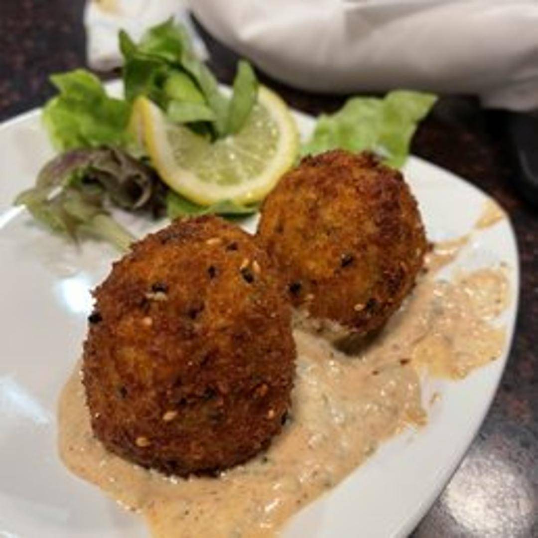 Delicious crab cakes made with lump crab meat, seasoned and pan-fried. Served with a tangy dipping sauce.