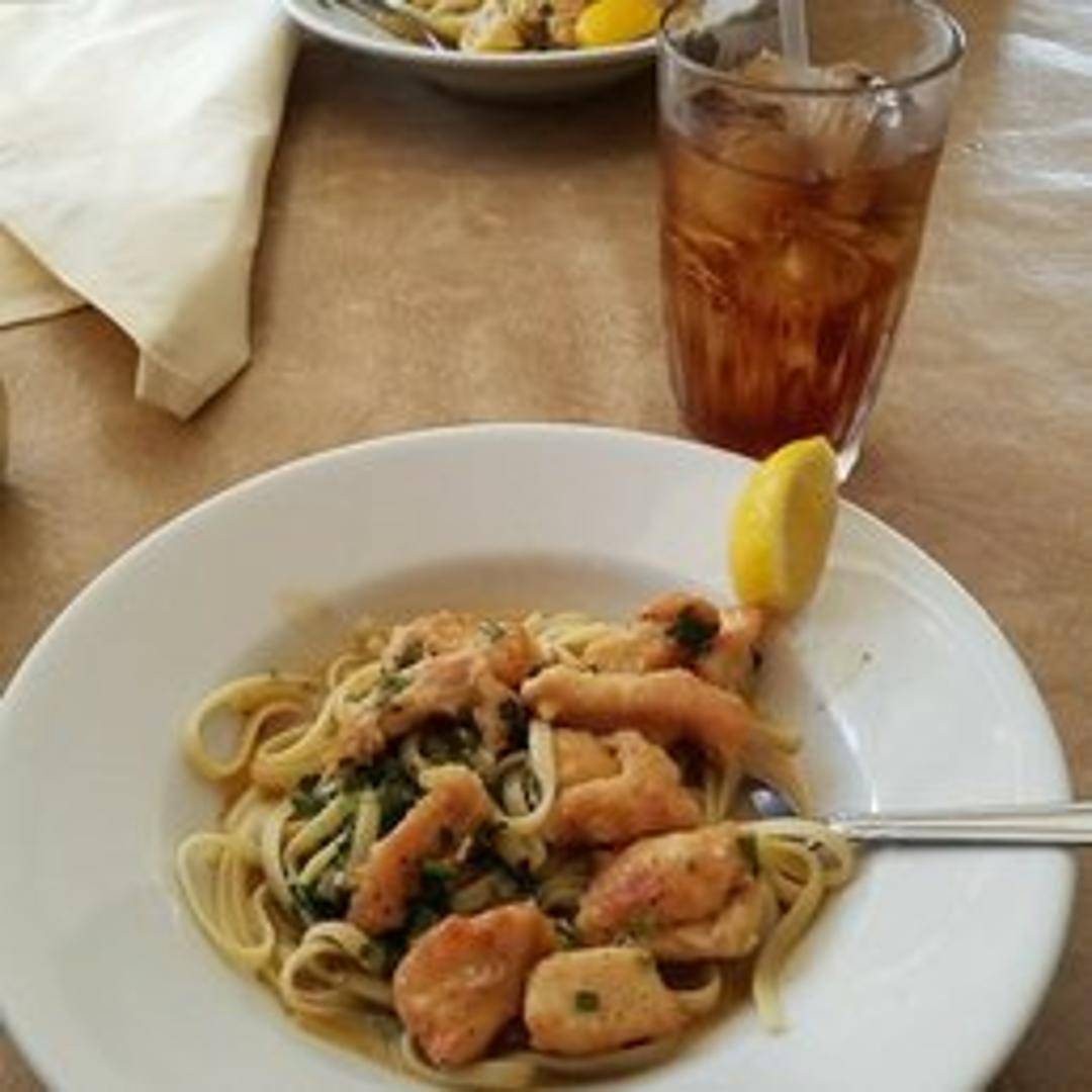 Tender chicken breast sautéed in a lemon-butter sauce with capers, served with a side of pasta.