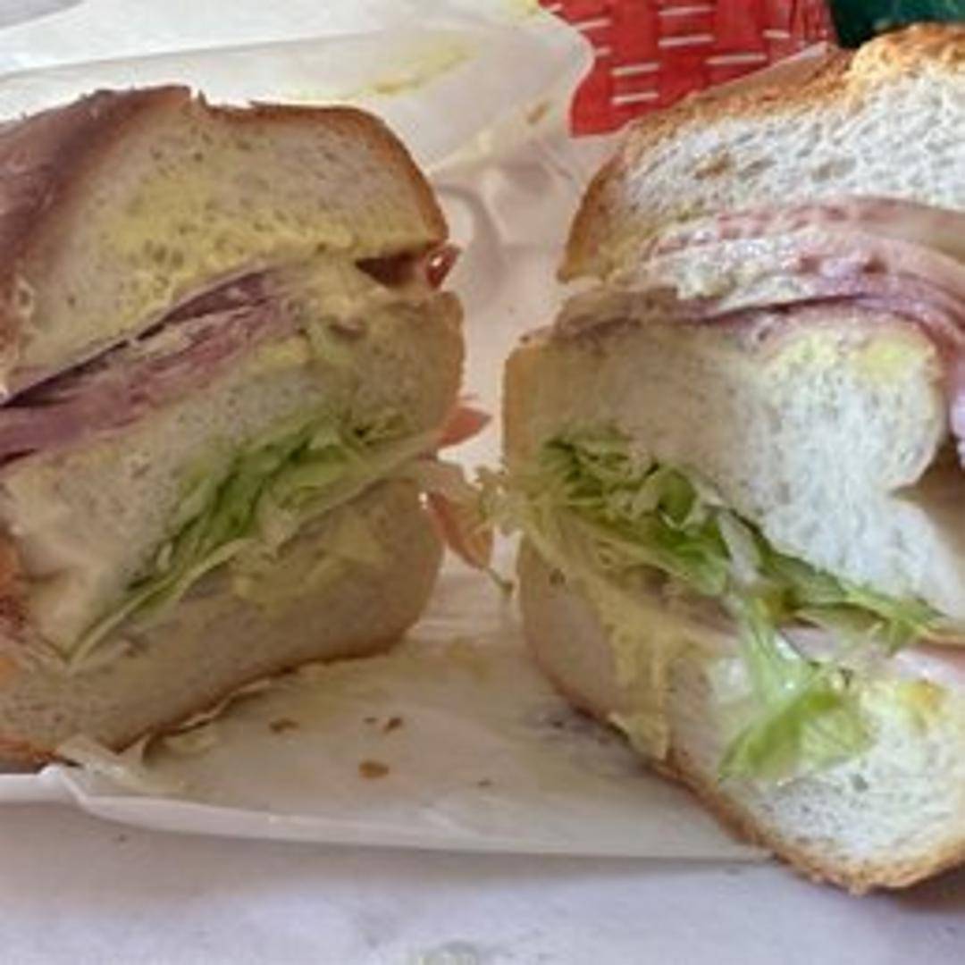 An assortment of sliced pork cold cuts (e.g., ham, prosciutto, mortadella) served on your choice of bread with lettuce, tomato, and your choice of dressing. Optional additions: cheese, onions, peppers.