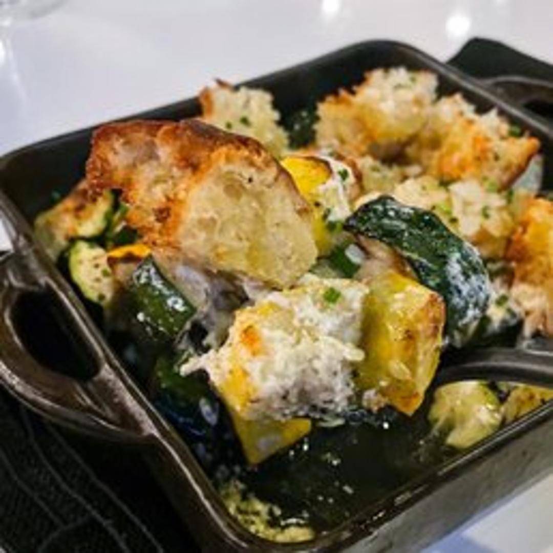 A comforting Southern classic, this casserole features tender yellow squash baked in a creamy, savory sauce, often enriched with a blend of cheeses like cheddar or Parmesan. Typically seasoned with onions and other aromatics, it's baked until golden and bubbly, sometimes topped with a buttery breadcrumb or cracker crust for added texture, creating a delightful and hearty side dish.