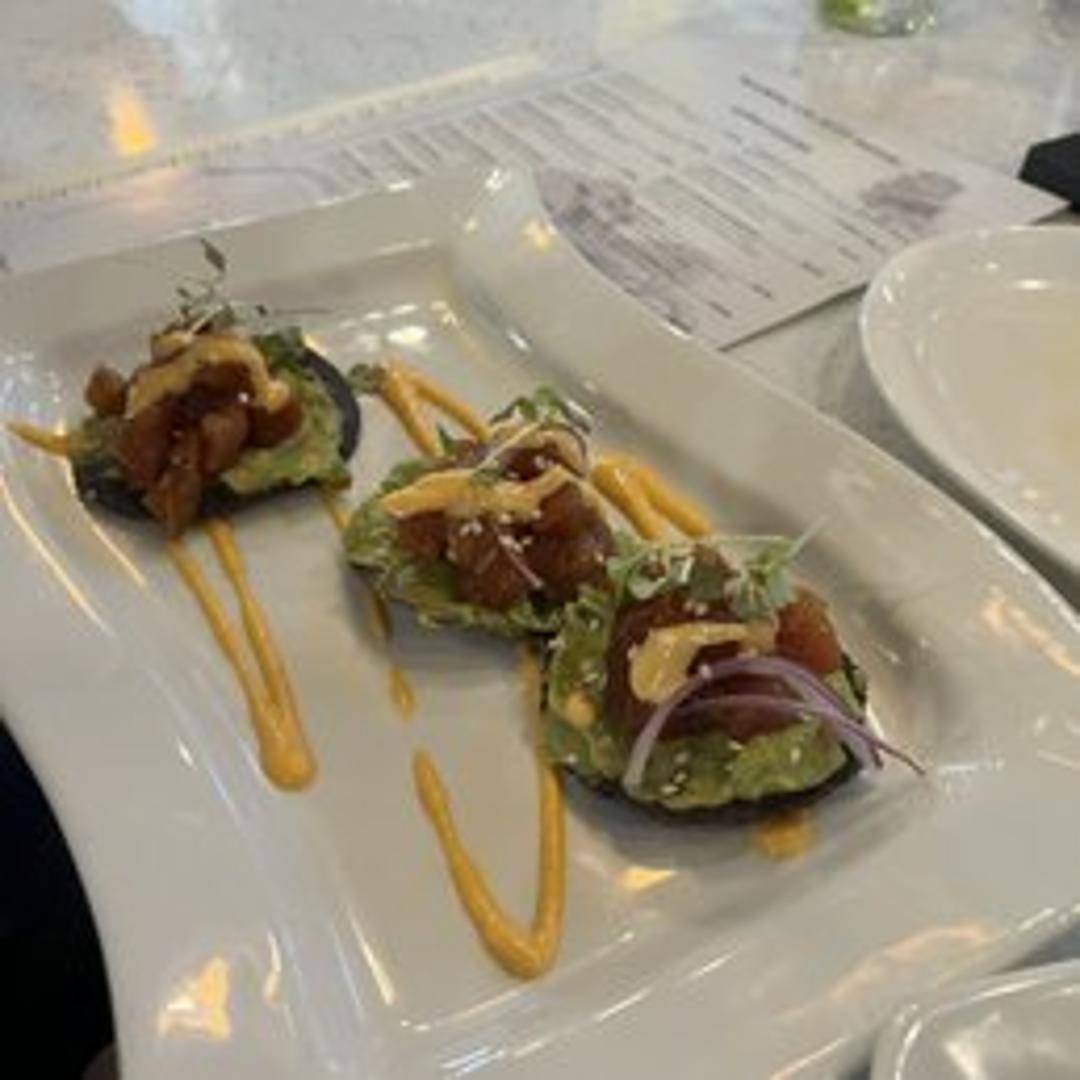 A delightful and textural experience, the Tuna Tostada Crunchy Tostada features fresh, high-quality tuna, often lightly marinated or seasoned, piled high on a crisp, golden-fried corn tostada. This vibrant dish typically includes fresh toppings such as creamy avocado, a hint of spicy mayo or chili oil, and fresh cilantro, offering a harmonious blend of flavors and satisfying crunch in every bite.
